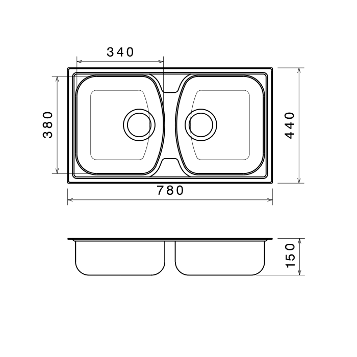 Kevmil KM-133 rozsdamentes két medencés mosogató tálca KM 44 × 78 MUNKALAPBA VÁGÓS MOSOGATÓTÁLCA