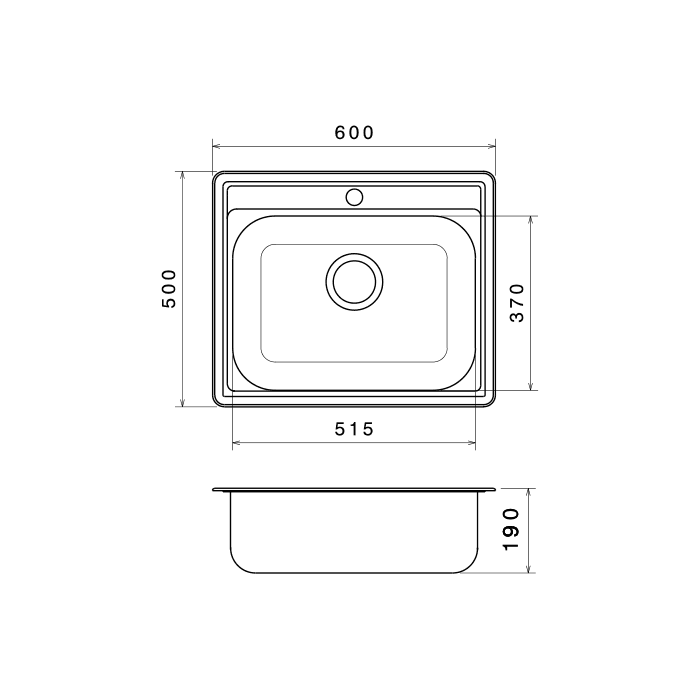 Kevmil KM-145 rozsdamentes egy medencés mosogató tálca 600 x 500 mm Munkalapba vágós