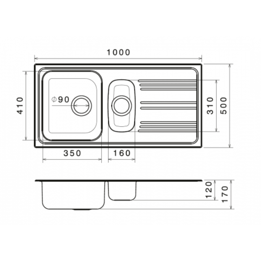 Kevmil KM-157 rozsdamentes két medencés csepptálcás mosogató tálca 1000 x 500 x 175mm MUNKALAPBA VÁGÓS MOSOGATÓTÁLCA