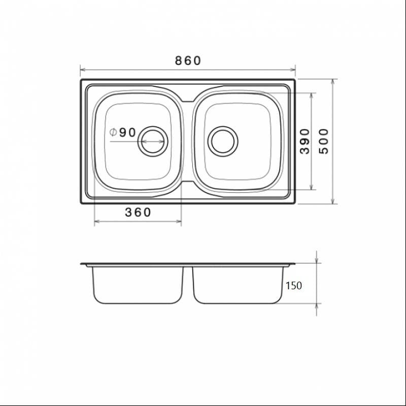 Kevmil KM-165 rozsdamentes két medencés mosogató tálca 860 x 500 x 150 mm MUNKALAPBA VÁGÓS MOSOGATÓTÁLCA