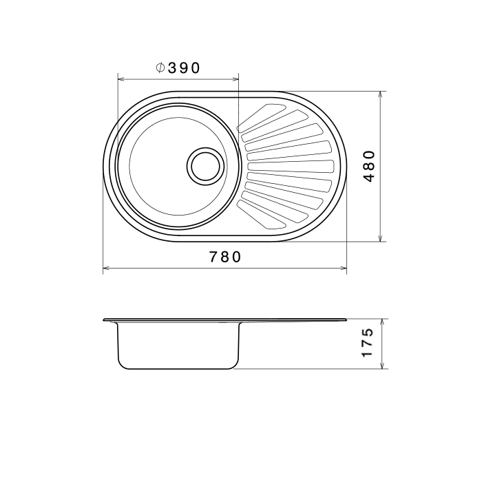 - Medenceméret: ∅ 390 x 175 mm