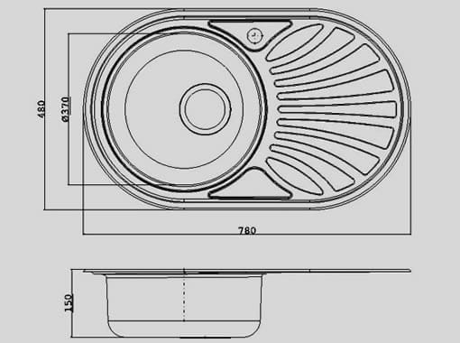 Kevmil KM – 113/2 rozsdamentes egy medencés kerek+csepptálca mosogató tálca KM 48 × 78 MUNKALAPBA VÁGÓS MOSOGATÓTÁLCA