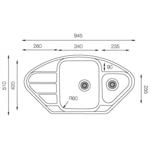 Kevmil LT 945.510.15 Exkluzív design egymedencés rozsdamentes sarok mosogató MUNKALAPBA VÁGÓS MOSOGATÓTÁLCA