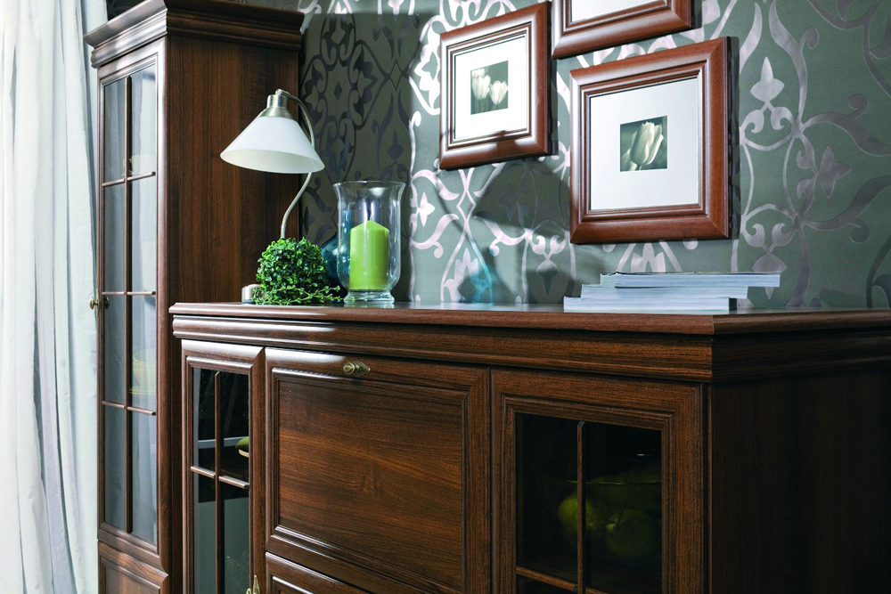 -Klasszikus nappali bútor elemei közül válogathat! A hagyományos elegancia a részletekben rejlik. Tökéletes megoldás azok számára, akik értékelik a klasszikus eleganciát és szeretik a tradicionális stílust. Alkalmas nappali berendezésére valamint dolgozó szobába vagy étkezőbe,akár hálószobába is. Ezen termék család magas minőségű laminált faforgácslapból és a frontok MDF díszketeléccel készülnek. Ebből kifolyólag a nagy értékű rusztikus bútorok érzését és látvány világát biztosítja megfizethető áron azok számára akik nem tudják megfizetni a drága tömörfa bútorokat.
