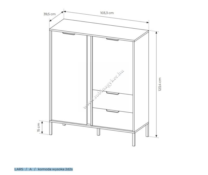 Szélesség: 103,3 cm Magasság: 123,4 cm Mélység: 39,5 cm