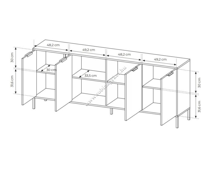 Szélesség 202,9 cm Magasság: 81,4 cm Mélység: 39,5 cm
