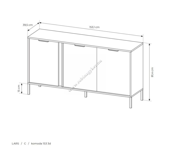 Komód 3D: Szélesség 153,1 cm Magasság: 81,4 cm Mélység: 39,5 cm