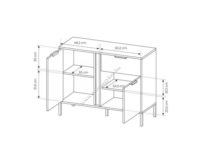Komód 2D1S: Szélesség: 103,3 cm Magasság: 81,4 cm Mélység: 39,5 cm