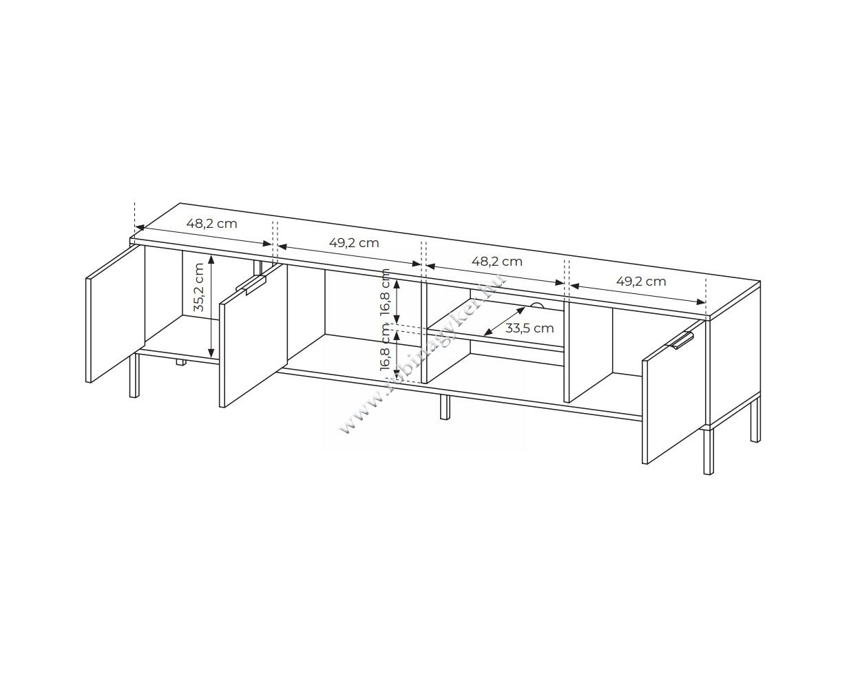 TV szekrény 3D: Szélesség: 202,9 cm Magasság: 53,4 cm Mélység: 39,5 cm