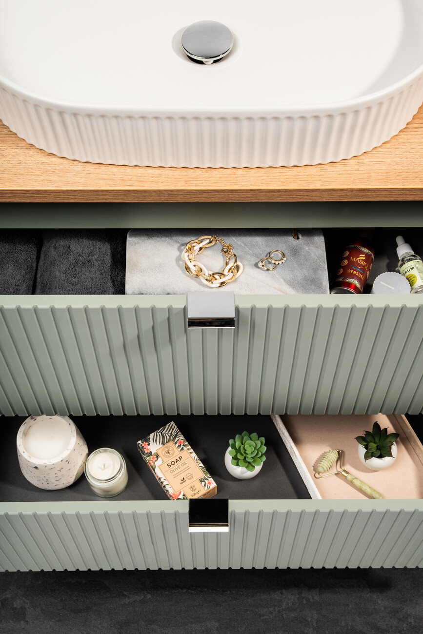 A LINE REED GREEN fürdőszoba bútor kollekció nem csak látványra erős, hanem funkcióra is.