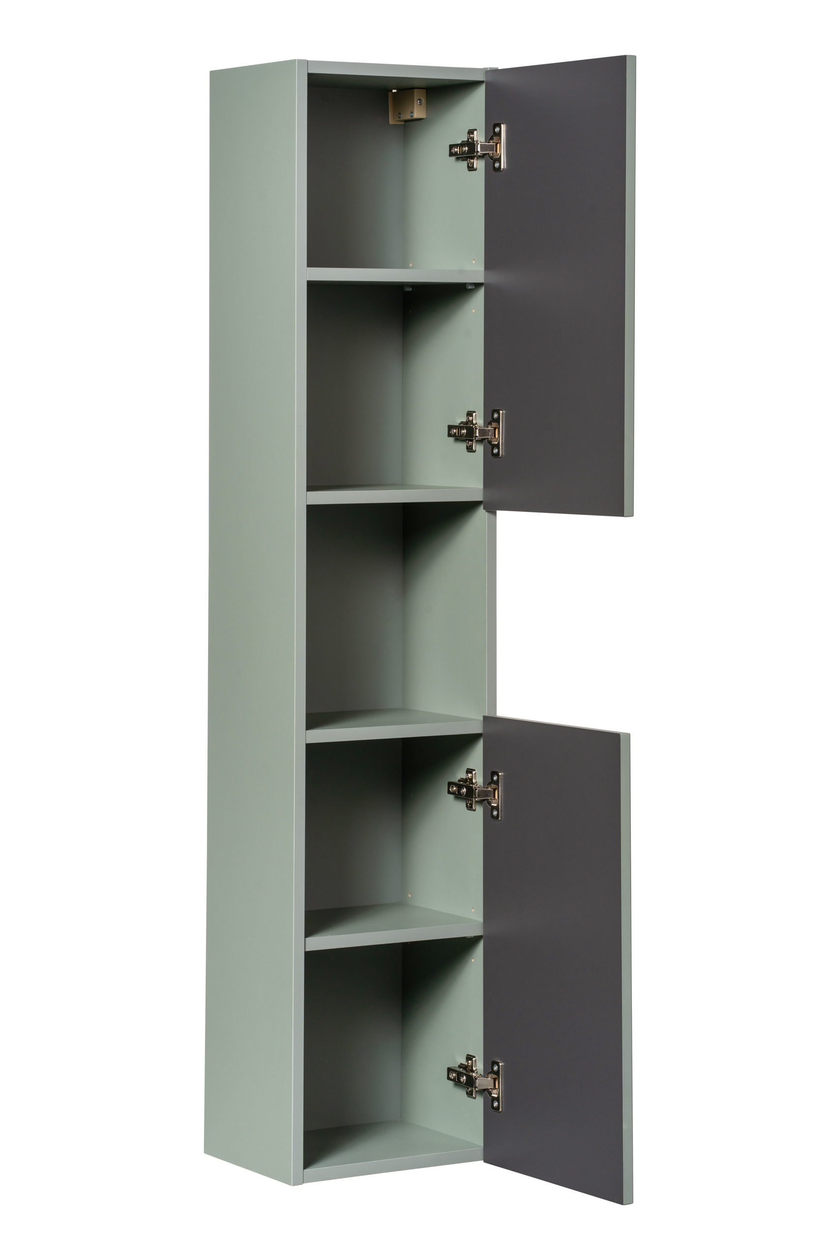 LINE REED GREEN kollekciós elem. Matt nádzöld (reed green) bordázott front meleg tölgy betéttel, modern lebegő hatással és könnyű tisztíthatósággal. Magas tárolómodullal a törölközőknek és pipere cuccoknak. A csaptelep és/vagy szifon jellemzően nem része az alapcsomagnak.