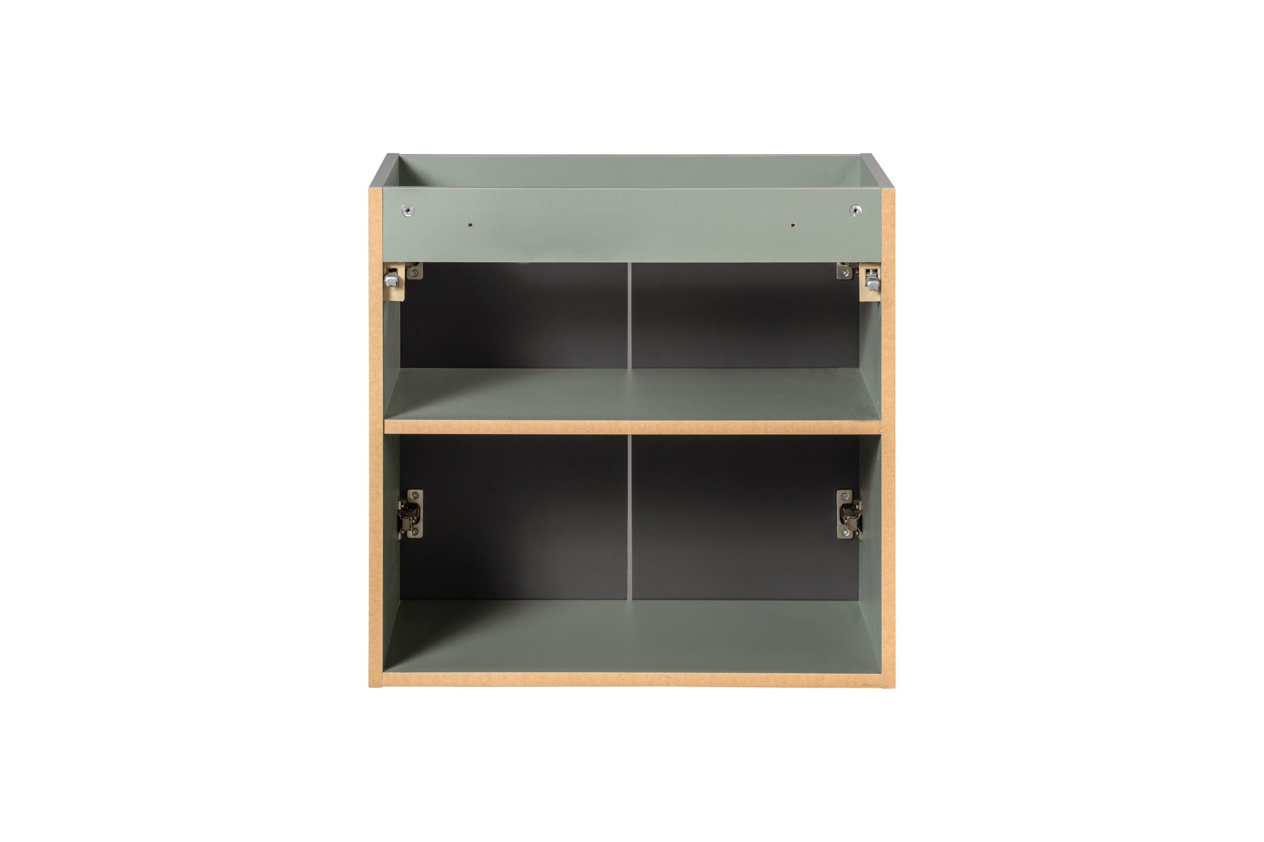 LINE REED GREEN kollekciós elem. Kb. ~60 cm széles kivitel. Matt nádzöld (reed green) bordázott front meleg tölgy betéttel, modern lebegő hatással és könnyű tisztíthatósággal. A csaptelep és/vagy szifon jellemzően nem része az alapcsomagnak.