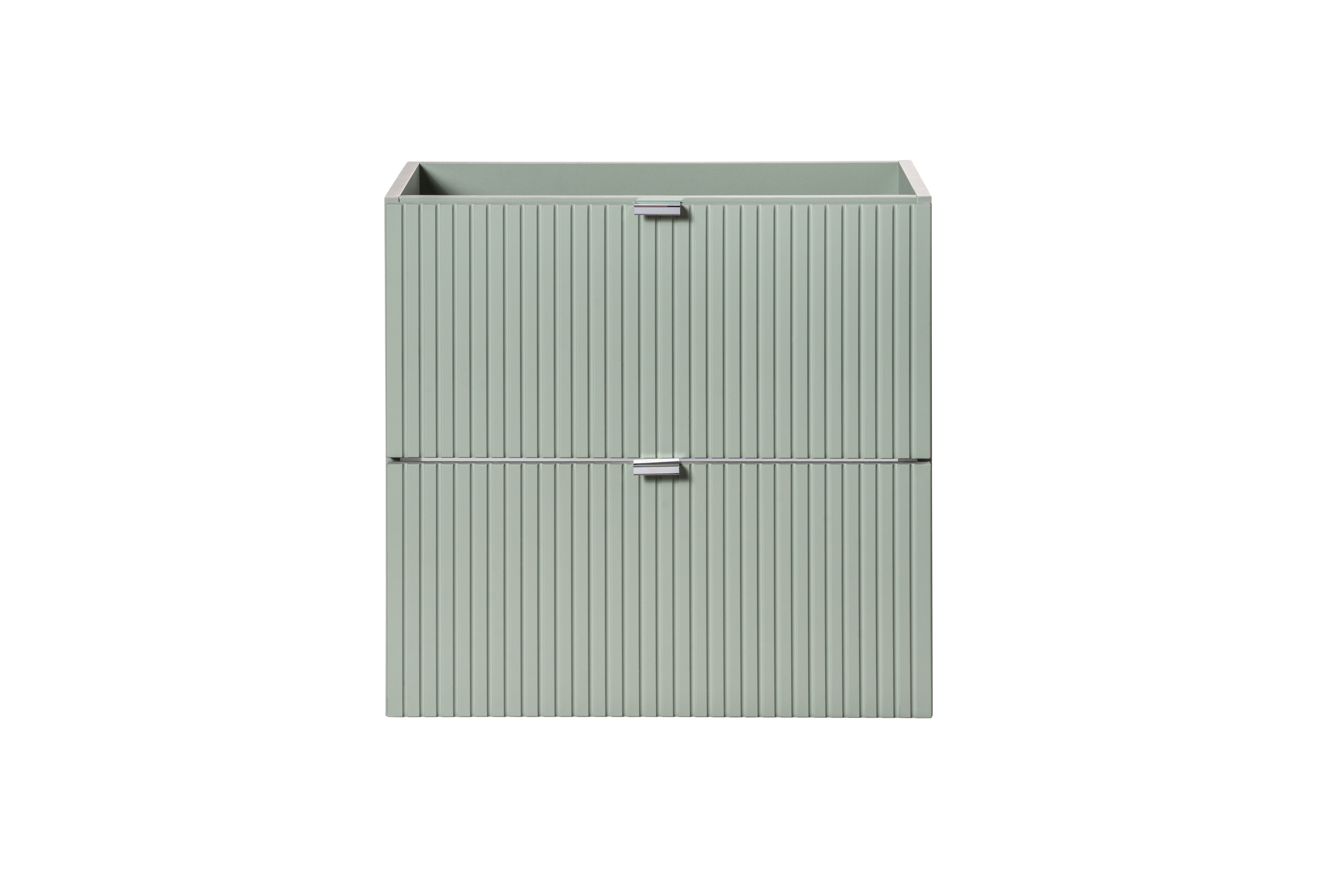 LINE REED GREEN kollekciós elem. Kb. ~60 cm széles kivitel. Matt nádzöld (reed green) bordázott front meleg tölgy betéttel, modern lebegő hatással és könnyű tisztíthatósággal. A csaptelep és/vagy szifon jellemzően nem része az alapcsomagnak.