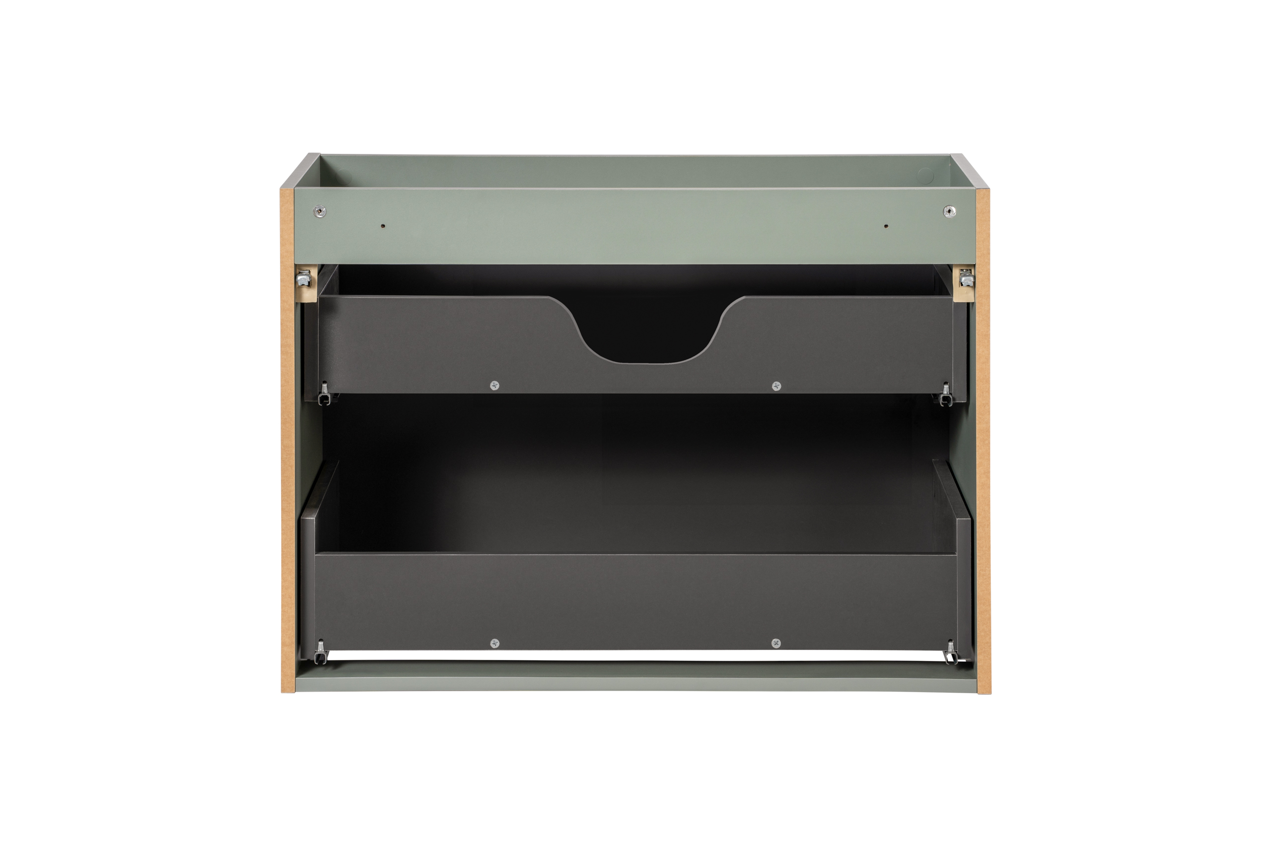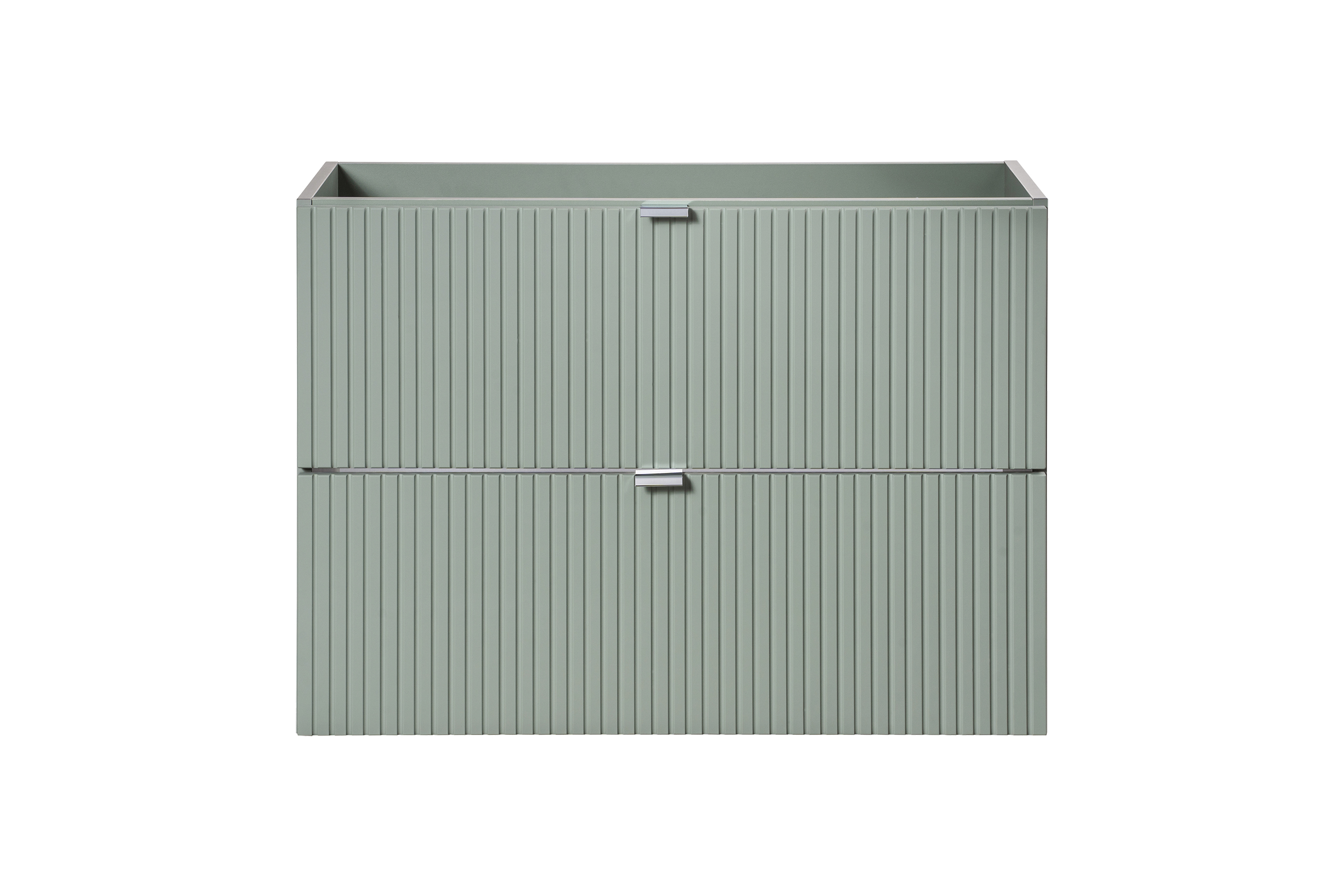LINE REED GREEN kollekciós elem. Kb. ~80 cm széles kivitel. Matt nádzöld (reed green) bordázott front meleg tölgy betéttel, modern lebegő hatással és könnyű tisztíthatósággal. A csaptelep és/vagy szifon jellemzően nem része az alapcsomagnak.