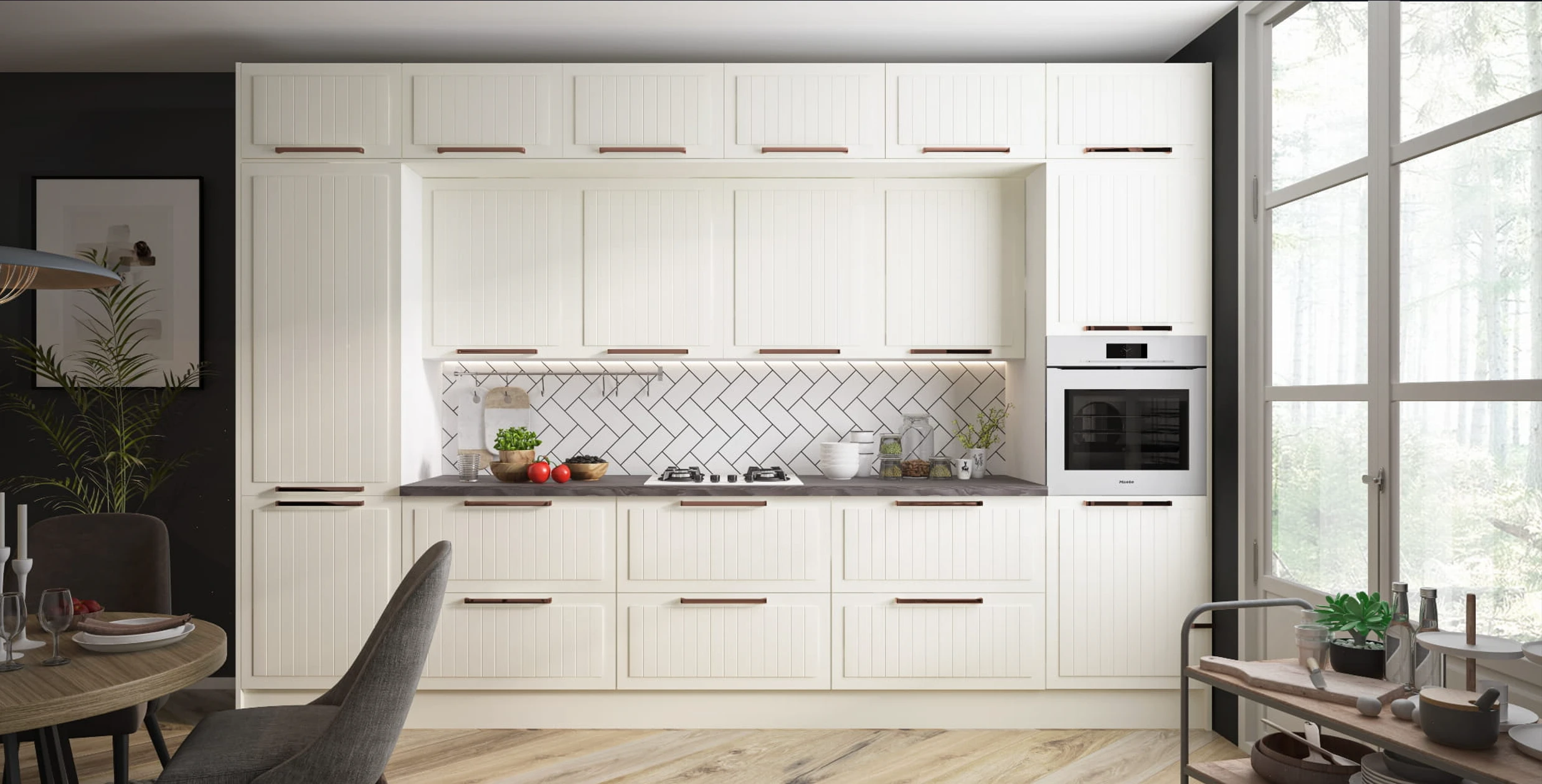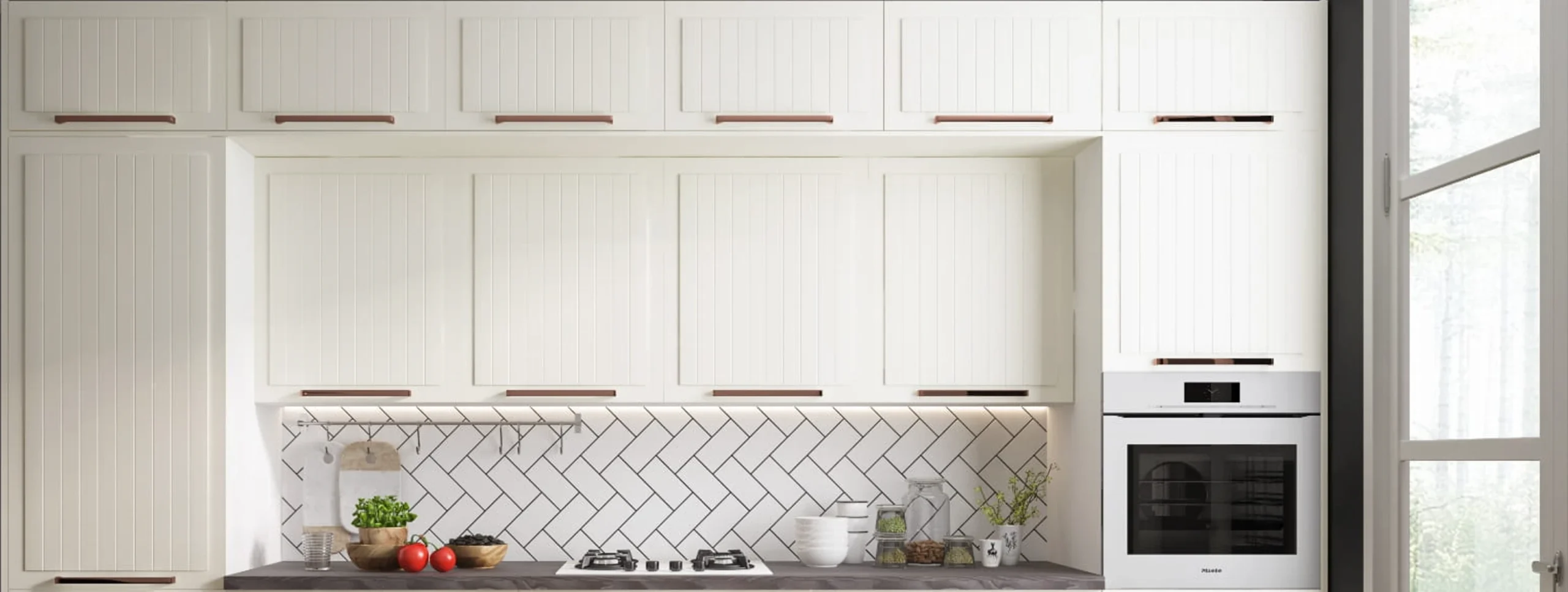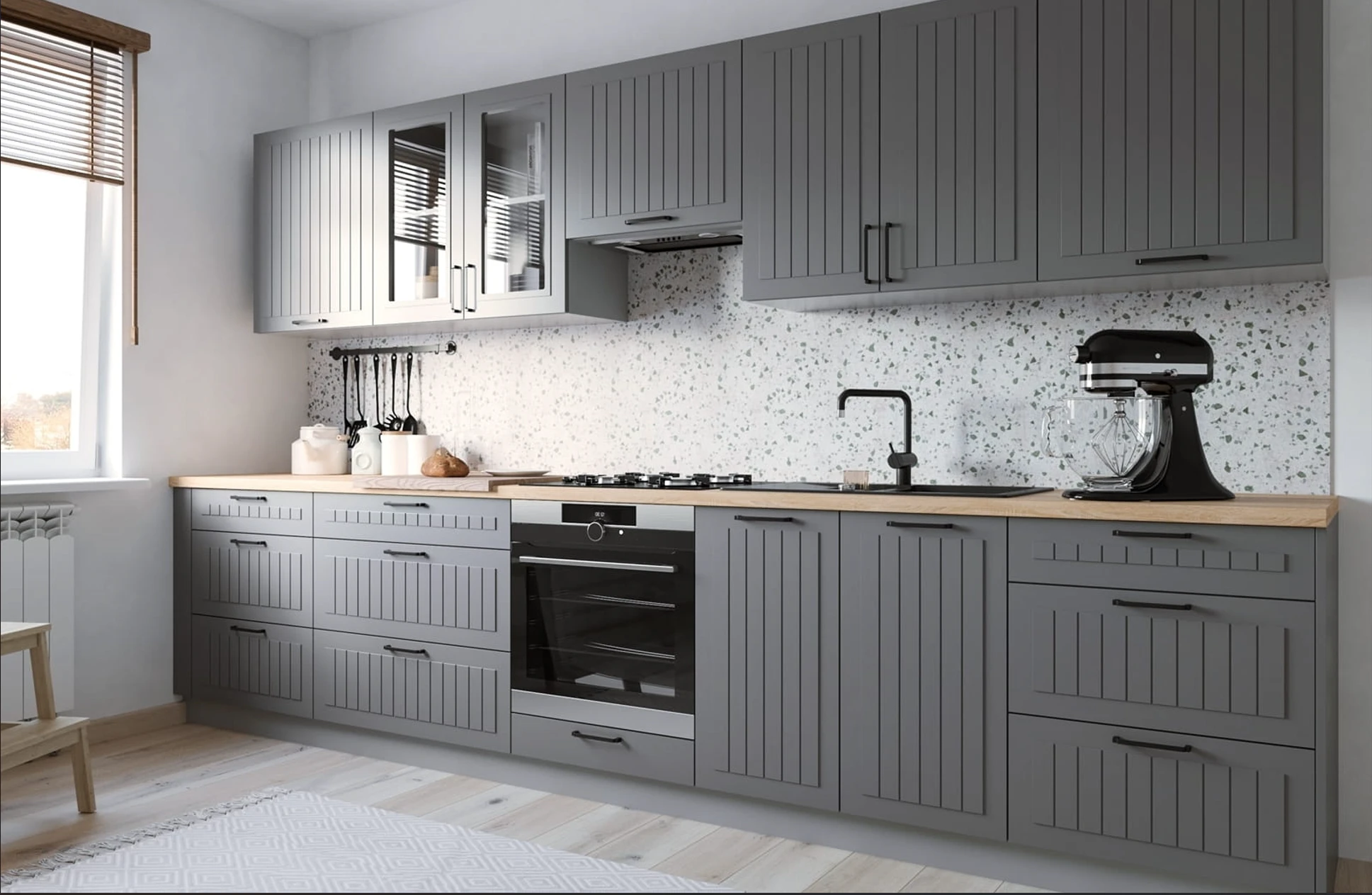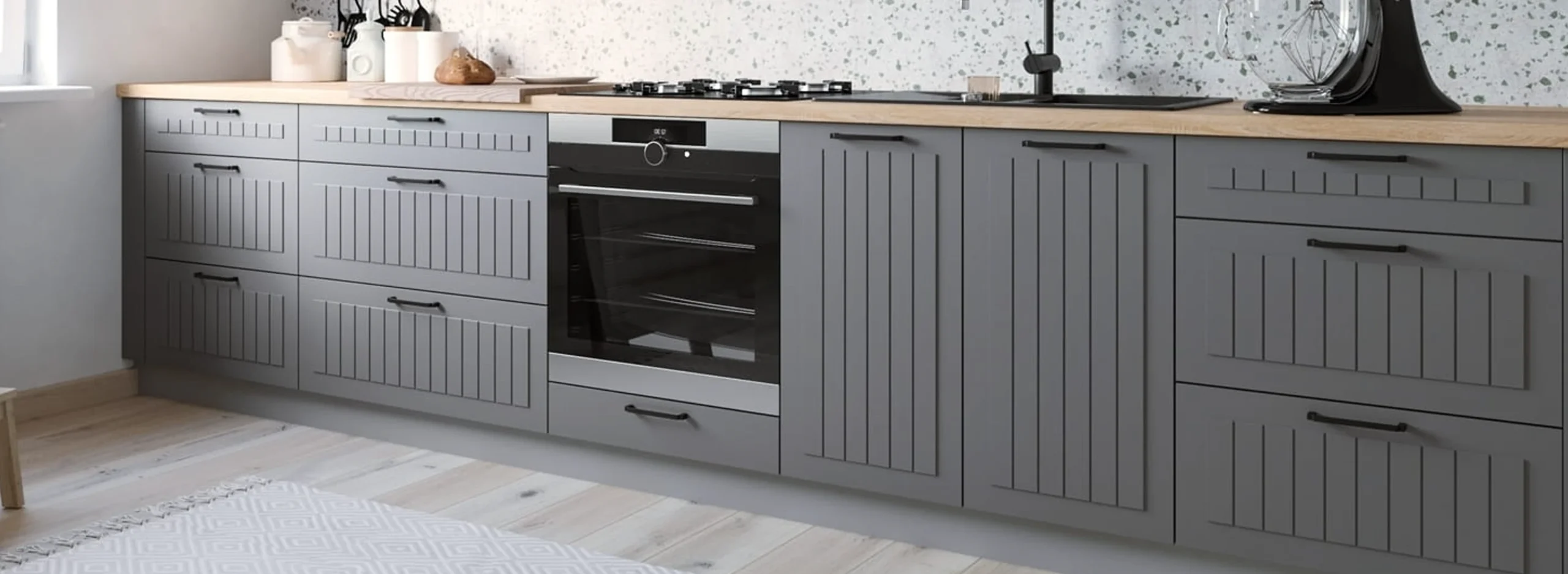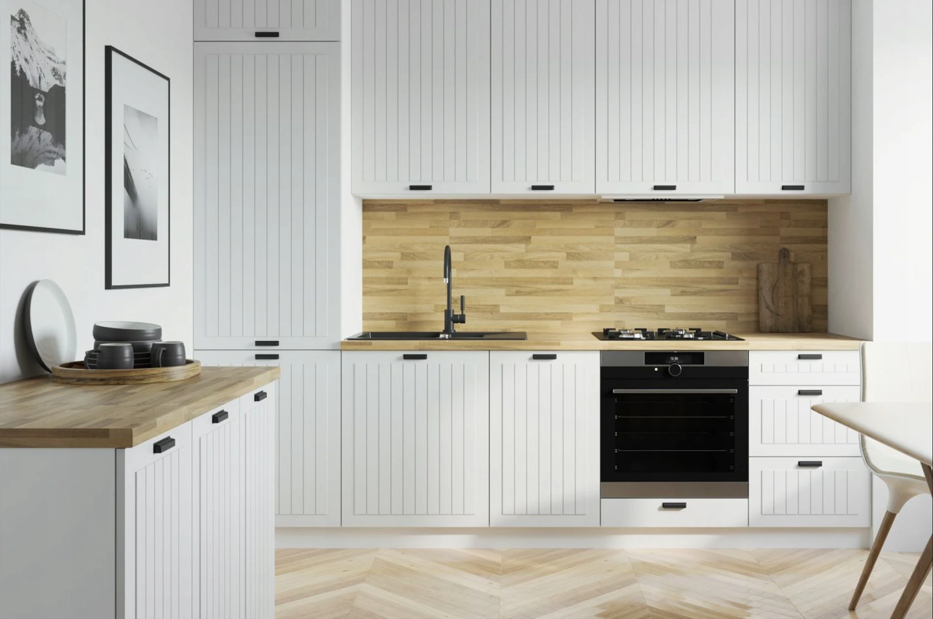 Az is előny, hogy a formavilág rendezett és csendes. A függőleges osztások finom textúrát adnak, miközben a síkok egységesek maradnak. Emiatt könnyű hozzájuk semleges falburkolatot, világos pultot vagy fa hatású hátfalat választani. A végeredmény nem lesz zsúfolt, még akkor sem, ha sok tárolóelem kerül be a tervbe.