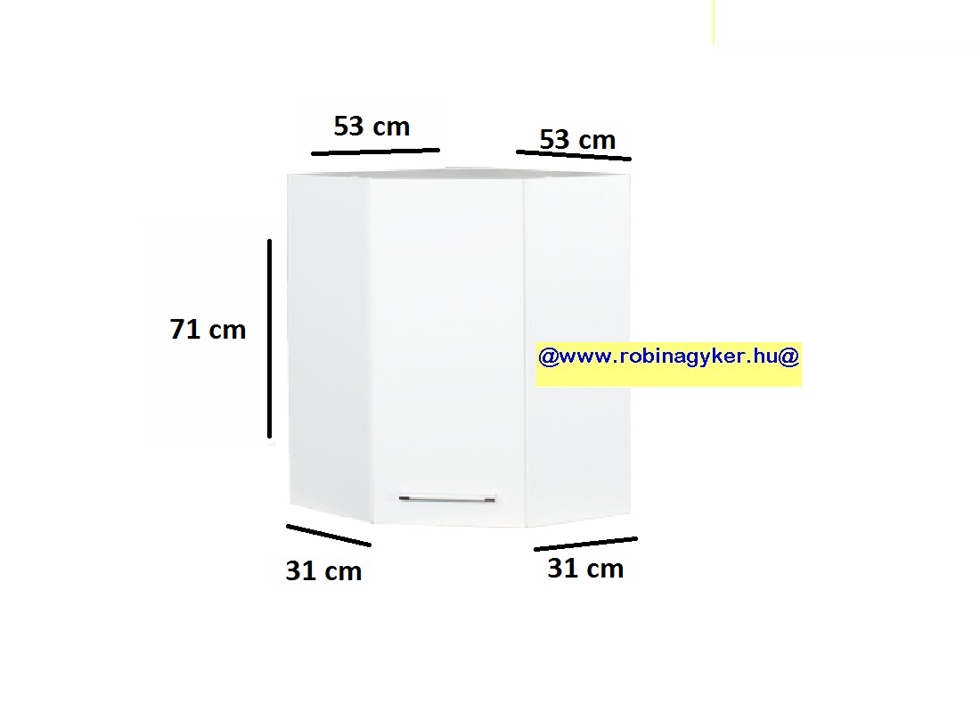 Magasság: 71 cm Szélesség (saroktól számítva): 53 / 53 cm Mélység (oldalfal): 31 /31 cm