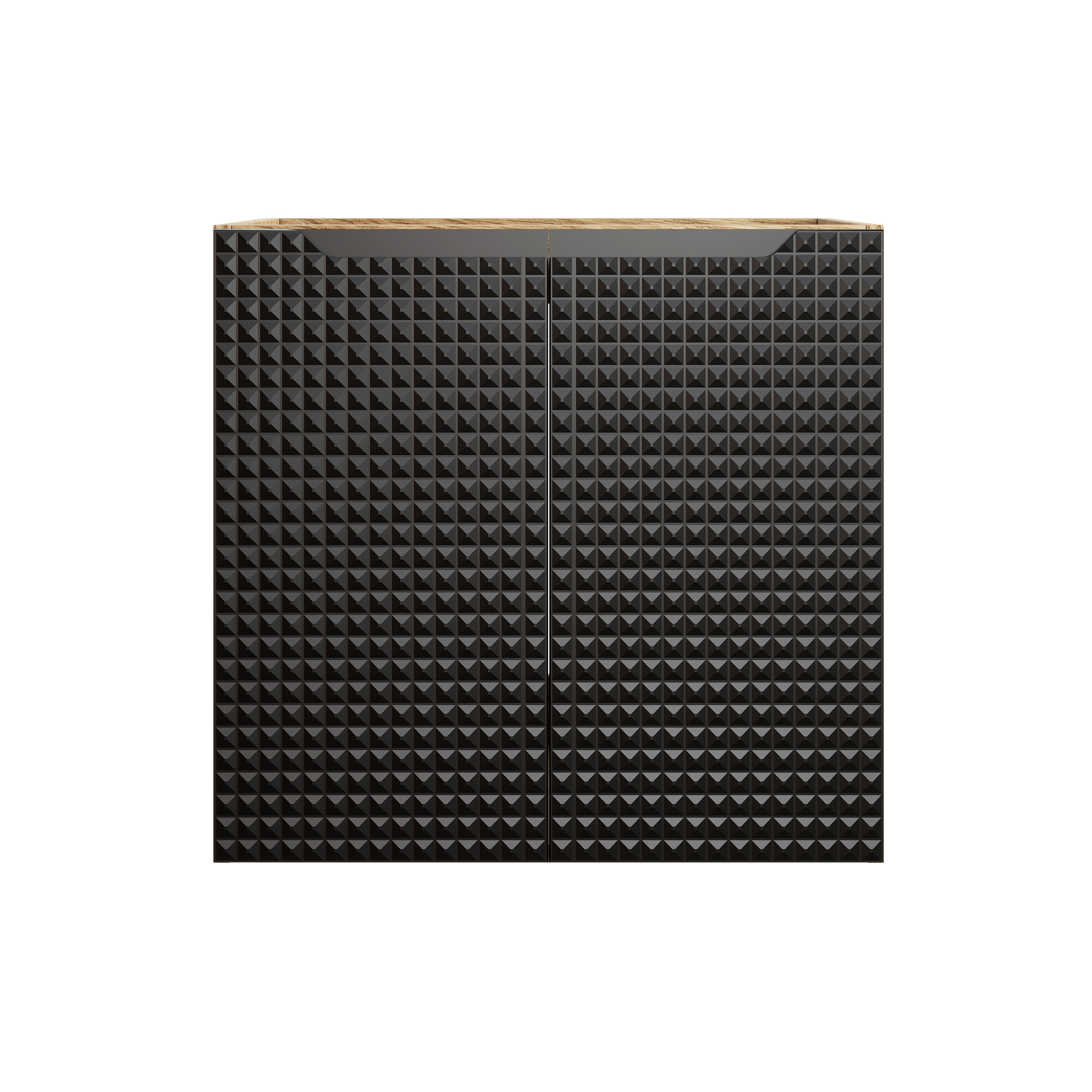 A LUXOR BLACK megjelenésének kulcsa a kontraszt. A fekete matt felület önmagában is elegáns, de itt nem „sima fekete” az összhatás: a 3D mintázat fénytörései miatt a front élőbb, prémiumabb hatású. Mellette a tölgy tónusú korpusz és pult természetes melegséget ad, így a végeredmény nem hideg, hanem kifejezetten barátságos. Ez a kettősség az, amitől ez a modern fürdőszoba bútor jól működik loft, minimal, skandináv és industrial enteriőrben is.