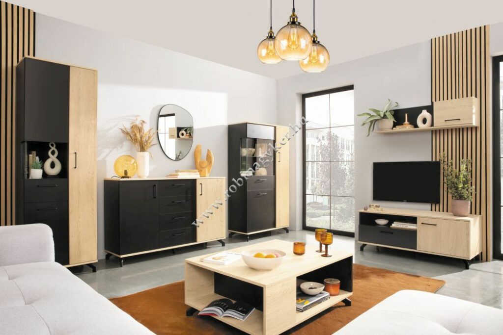 A Madison kollekció a Meblar gyártó legújabb ajánlata, amelyet a nappalinak szenteltek. A kollekciót a modern dizájn és a praktikus, ötletes megoldások ötvözete jellemzi. A blokk megkülönböztető eleme két dekor kontrasztos kombinációja. Az indusztriális stílus kedvelőinek a fekete és a kekszet tölgy színei jelentik az ideális megoldást. A beltérnek meleg, meghitt hangulatot adó kiegészítő elemként a gyártó bevezette az üvegvitrinek és komódok világításának lehetőségét, amely tökéletesen szórja a fényt és nagyon kellemessé teszi a belső térben eltöltött pillanatokat.