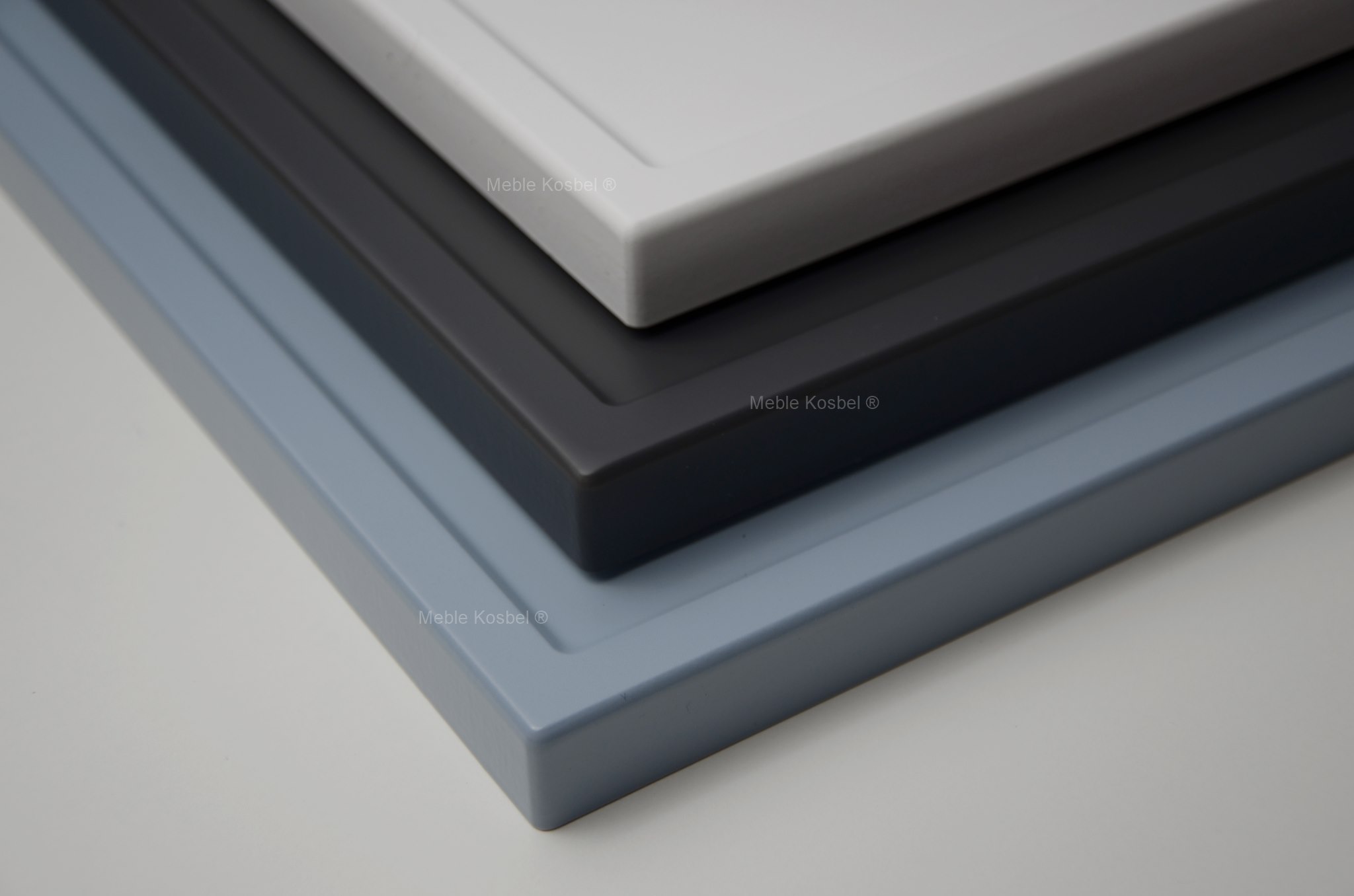 A frontok 16mm vastag MDF ajtólapok. Az MDF előlapok PVC fóliával vannak bevonva, matt szerkezetű szaténnel kombinálva.