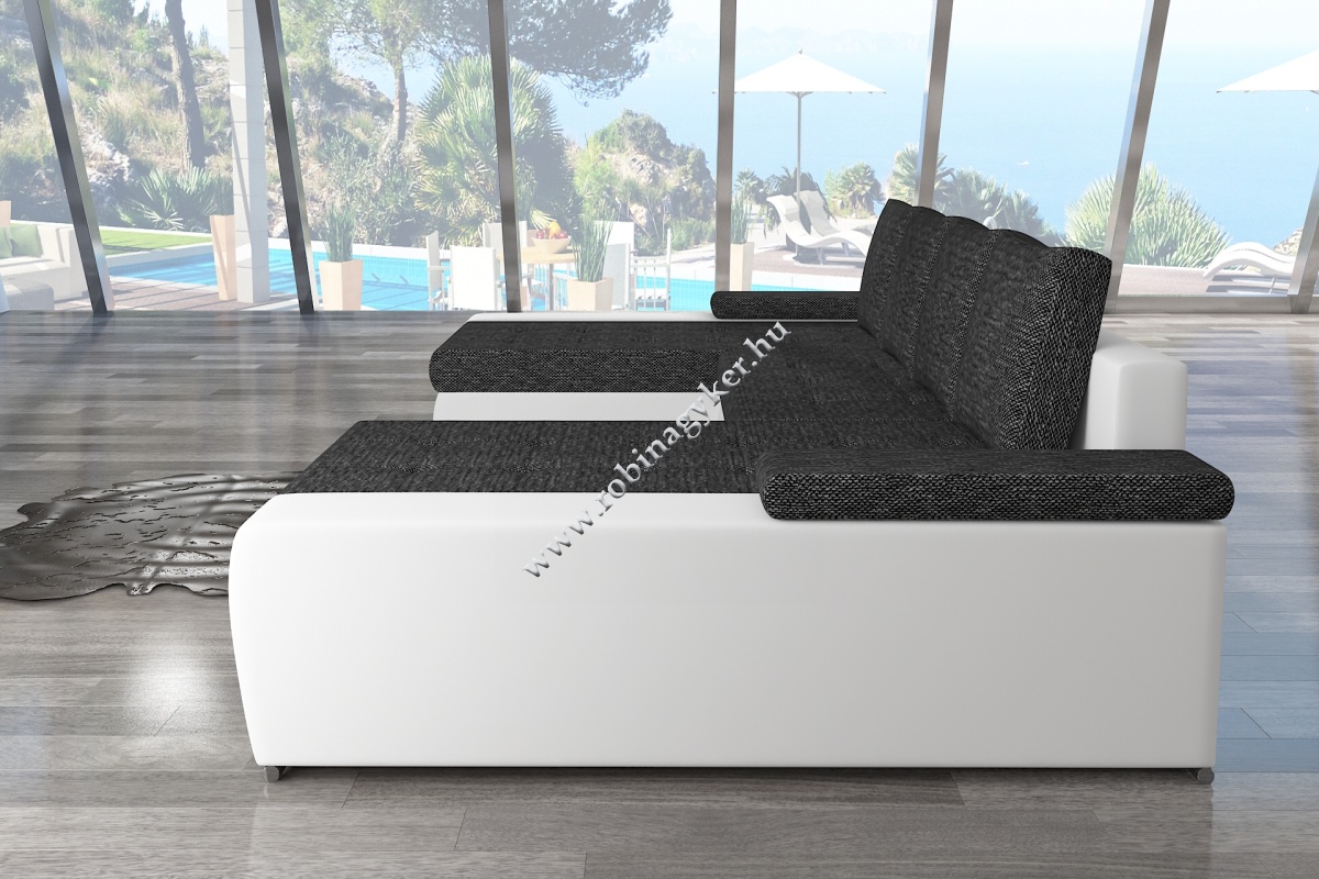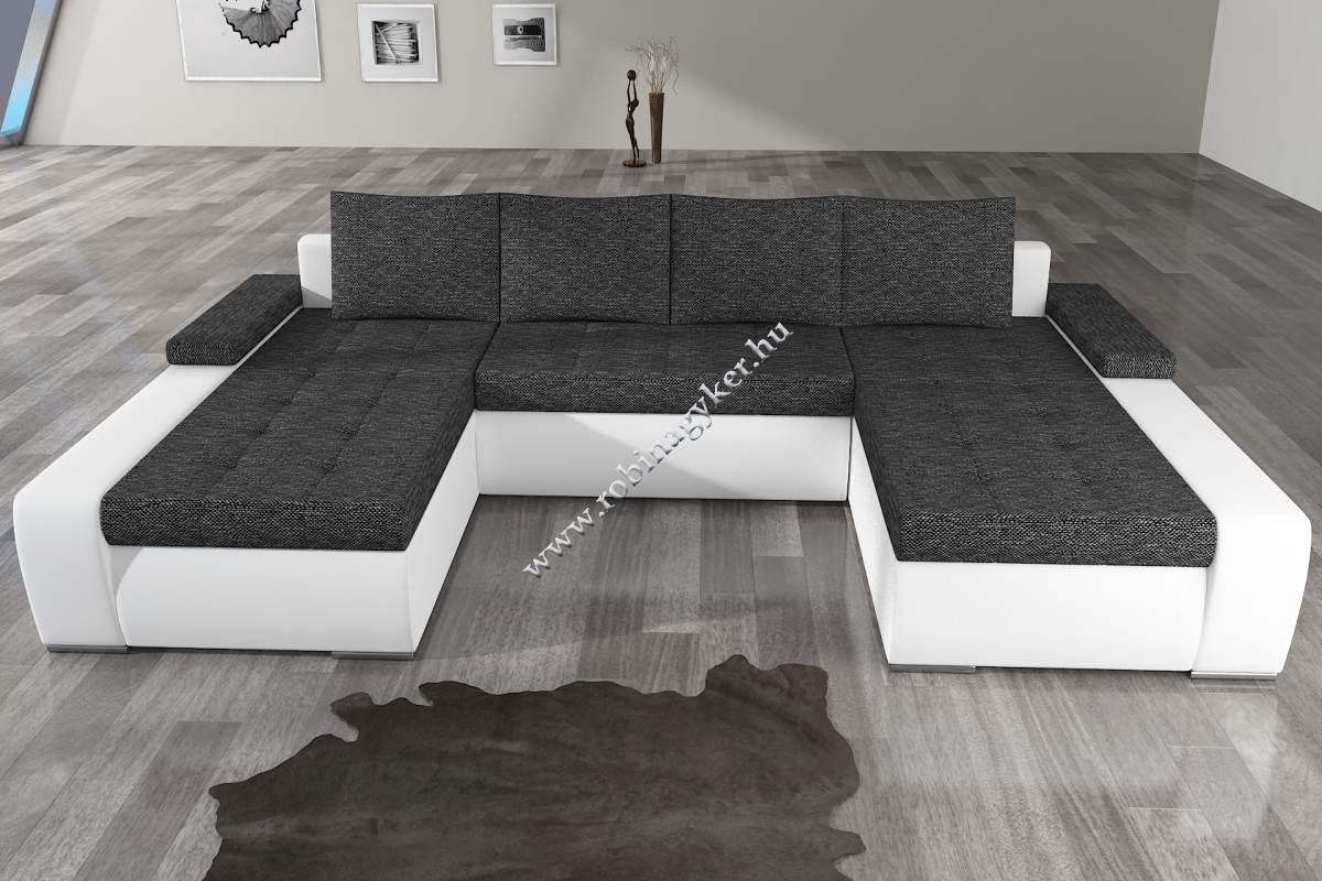 U alakú univerzális sarokgarnitúra ajánlatunkban 12 színösszeállítás közül választhat melyek erős-strapabíró zsákszövet ülőfelülettel rendelkeznek és a kafák valamint az oldal és hátrészek jó minőségű textilbőrrel vannak bevonva.