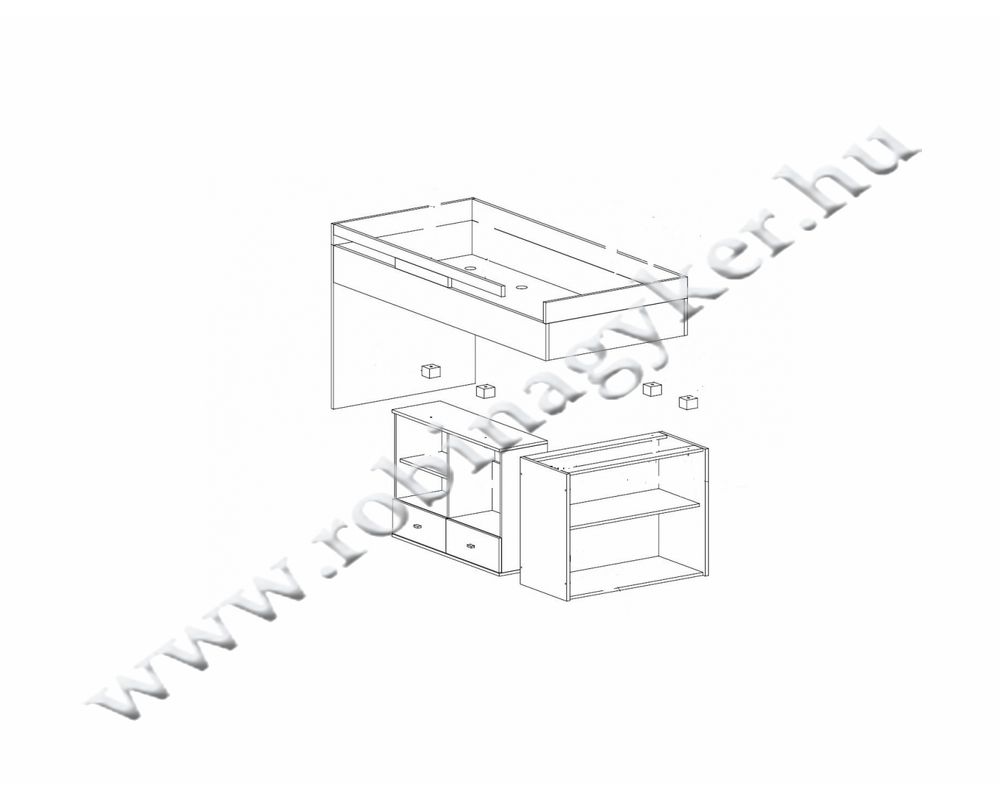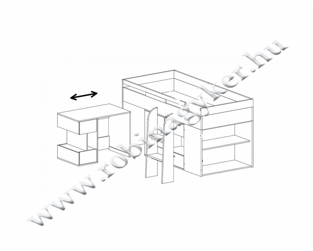 (ifjúsági ágy, íróasztallal, polcokkal, matrac nélkül)