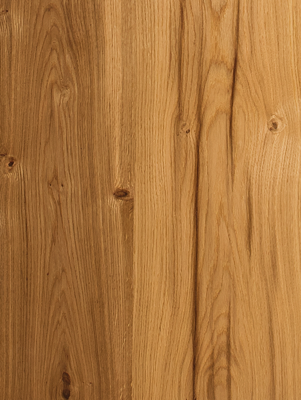 -Előlapok: természetes furnér régi tölgy rönkökből tömör fa elemekkel
