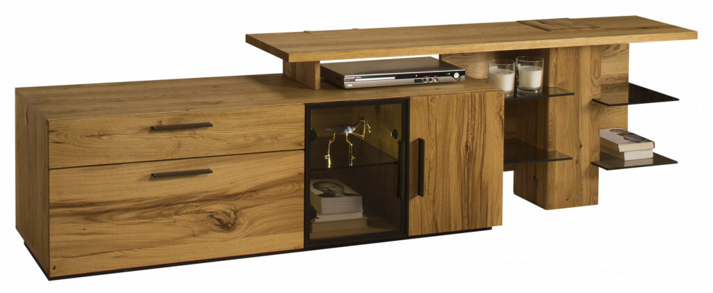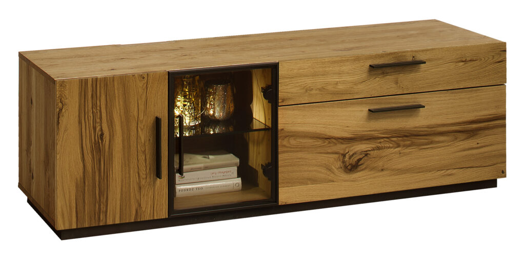Nemes anyag, modern formában. Az egyedi fa szépsége a bútorgyártás precizitásával mutatkozik meg. Az eredeti fa furnérok tömörfa elemekkel való kombinációja tartós és természetesen gyönyörű bútorok készítését teszi lehetővé. A bútor test éleinek precízen elkészített marása még jobban láthatóvá teszi a kiváló minőségű anyagok használatát. Az olyan aprólékosan kiválasztott részleteknek köszönhetően, mint a barna alumínium keretek, fogantyúk, mind a lakás belső időtlen kialakítását hozzák létre.