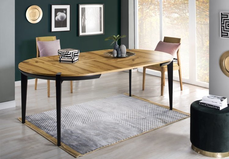 MORENO MOR.074.03.Bővíthető étkező asztal fekete fa lábbal tömörfa bútor*