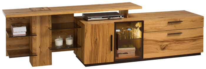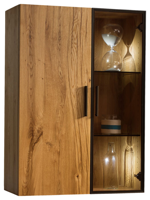 Nemes anyag, modern formában. Az egyedi fa szépsége a bútorgyártás precizitásával mutatkozik meg. Az eredeti fa furnérok tömörfa elemekkel való kombinációja tartós és természetesen gyönyörű bútorok készítését teszi lehetővé. A bútor test éleinek precízen elkészített marása még jobban láthatóvá teszi a kiváló minőségű anyagok használatát. Az olyan aprólékosan kiválasztott részleteknek köszönhetően, mint a barna alumínium keretek, fogantyúk, mind a lakás belső időtlen kialakítását hozzák létre.