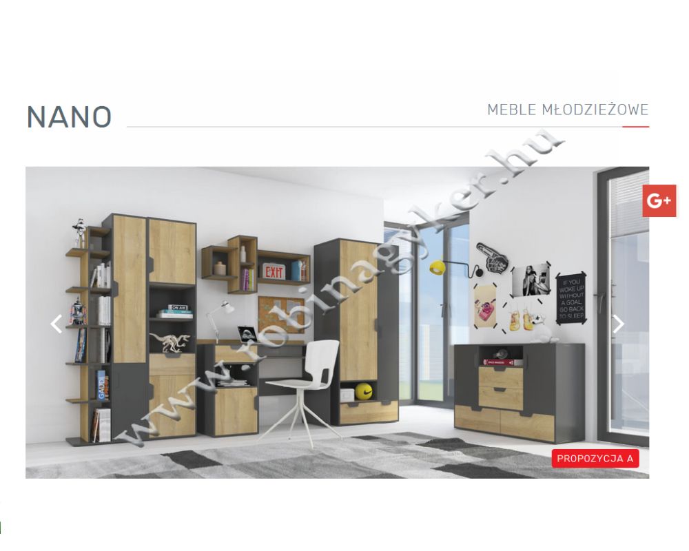 A Nano elemes ifjúsági bútorcsalád különböző összeállításaival és kedvező áraival lehetőséget teremt Önnek olyan szobabelső kialakításához, ami igazán illik a meglévő szoba méreteihez illetve jövőbeni használójának igényeihez.