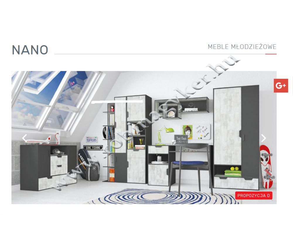 A Nano elemes ifjúsági bútorcsalád különböző összeállításaival és kedvező áraival lehetőséget teremt Önnek olyan szobabelső kialakításához, ami igazán illik a meglévő szoba méreteihez illetve jövőbeni használójának igényeihez.