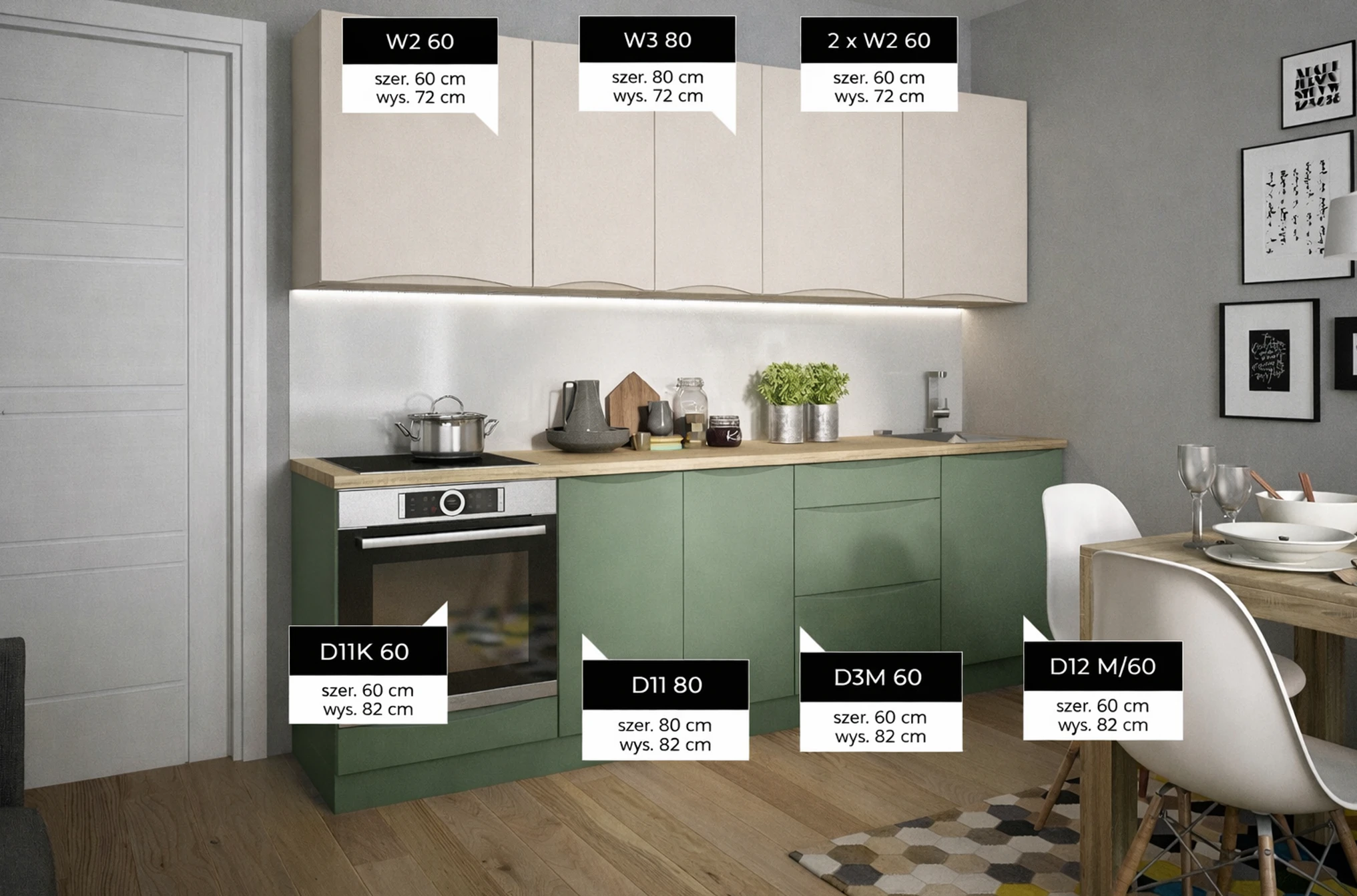(szélesség x magasság [cm] – a szekrények méretei munkalap nélkül)