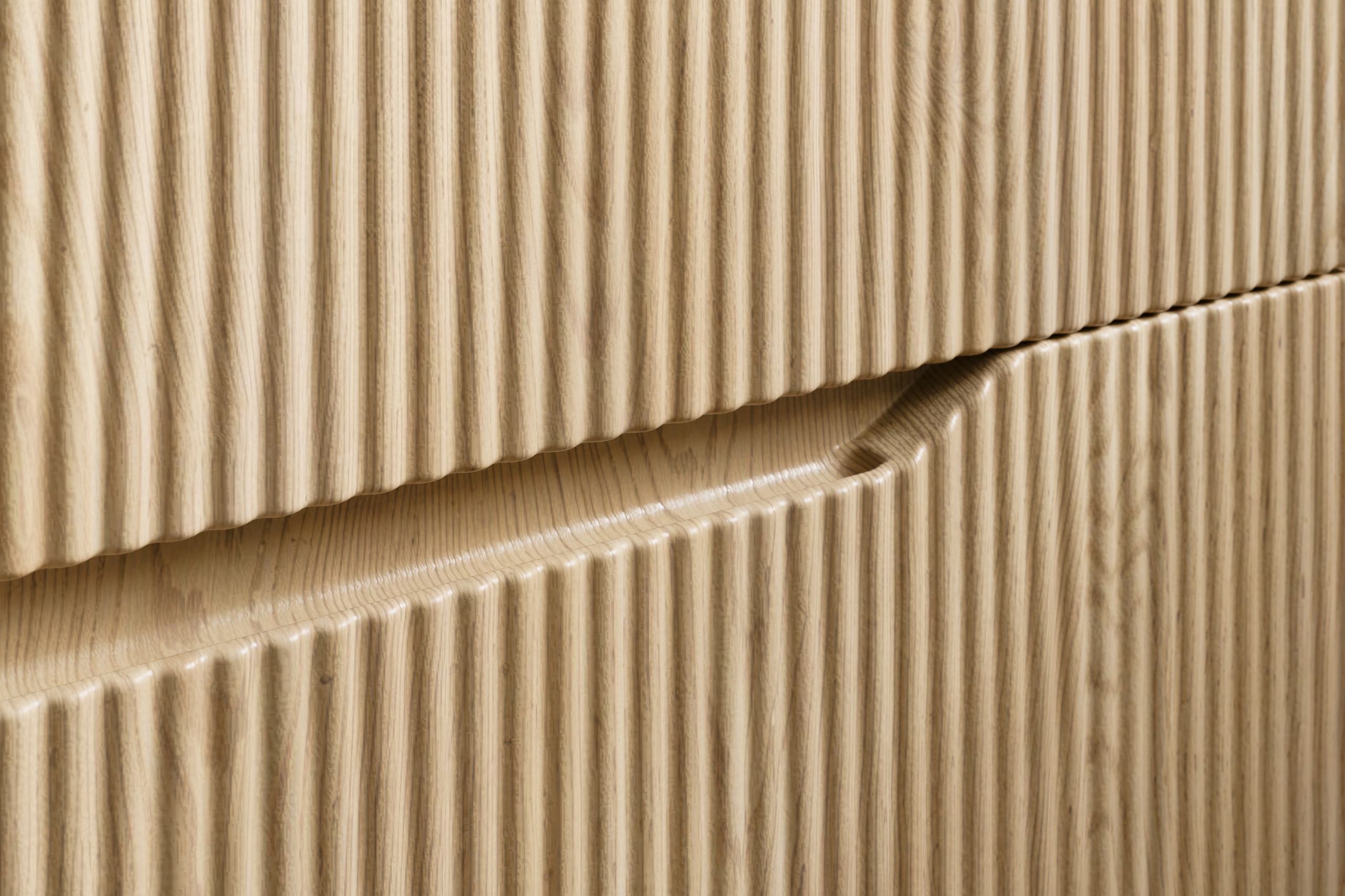 ötvözi a kortárs, letisztult részletekkel. A függőleges, bordázott frontok finom ritmust adnak a felületnek,