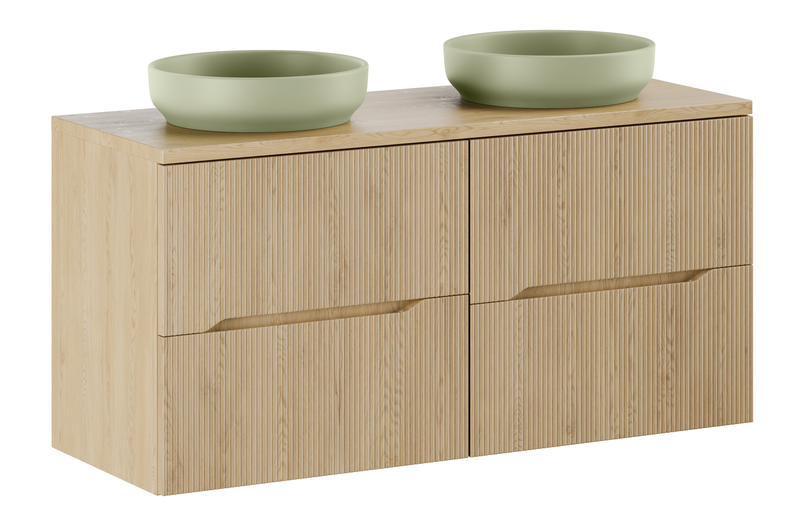 teret, miközben a bordázott felületek és a letisztult vonalak a modern fürdőszoba bútor irányt erősítik.