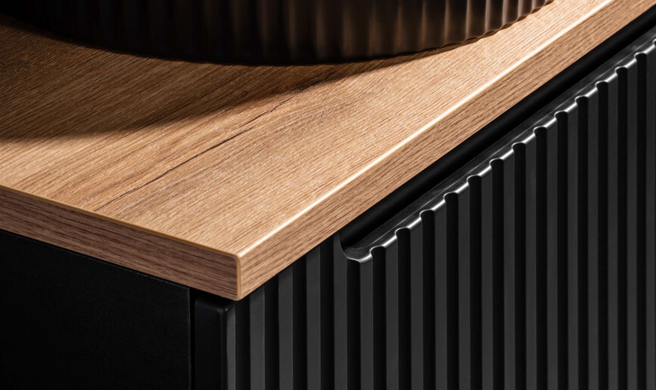 NOVA BLACK stílusjegyek: bordázott front, letisztult fogás, minimalista arányok