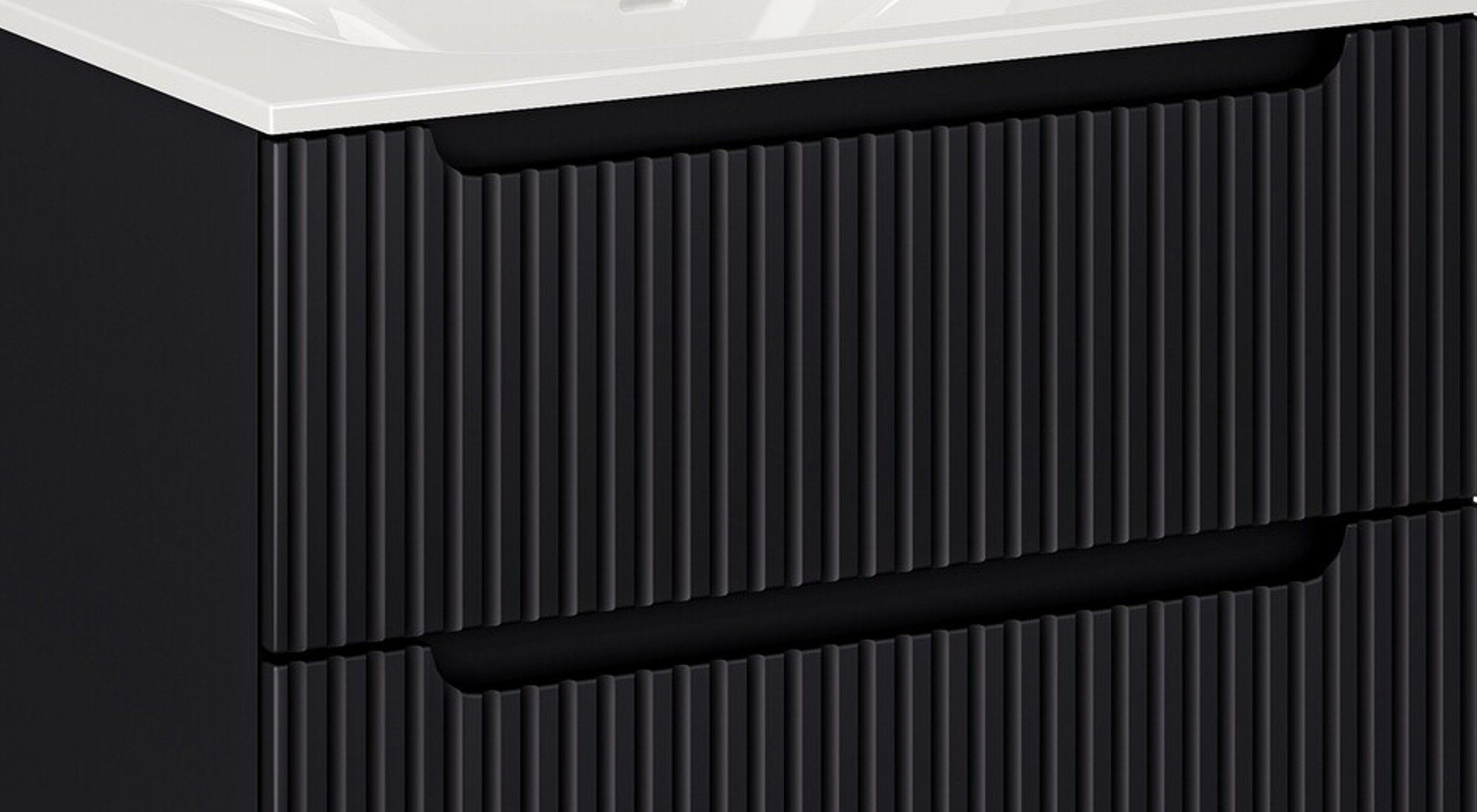 Ha olyan fürdőszoba bútor megoldást keresel, ami egyszerre látványos, időtálló és a mindennapokban is kényelmes, a NOVA BLACK irány nagyon jó választás. A kollekció a modern enteriőrök egyik legnépszerűbb alapját hozza: matt fekete felületek, markáns függőleges bordázás, letisztult vonalak és olyan részletek, amelyek a használat során is “prémium” érzetet adnak. A fekete tónus ráadásul elképesztően jól kombinálható: fehér szaniterekkel kontrasztos, fa felületekkel meleg, szürke burkolatokkal pedig kifejezetten építészeti hatású.