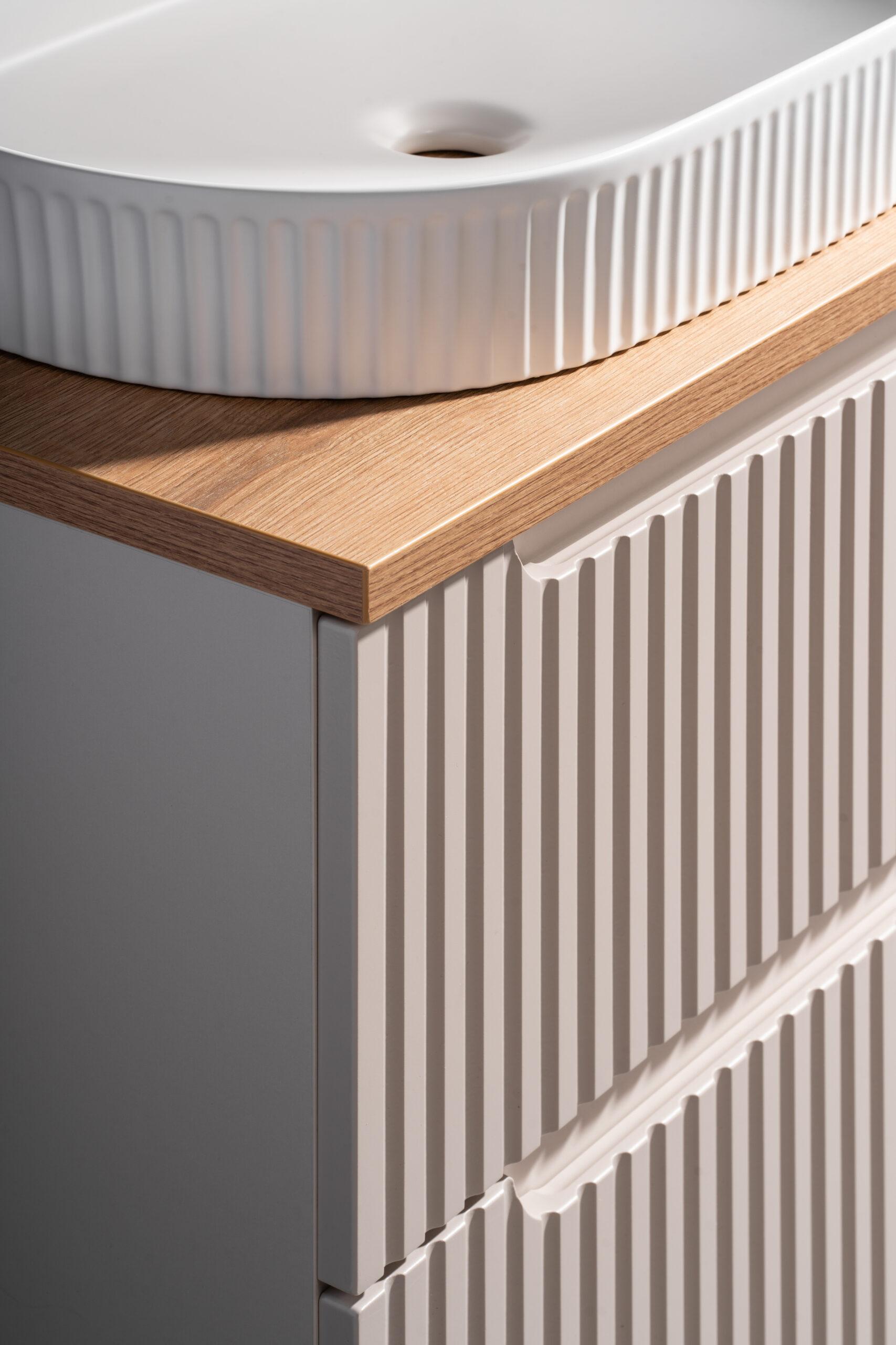 NOVA CASHMERE fürdőszoba bútor kollekció – elegáns kasmír árnyalat, bordázott frontok és átgondolt tárolás