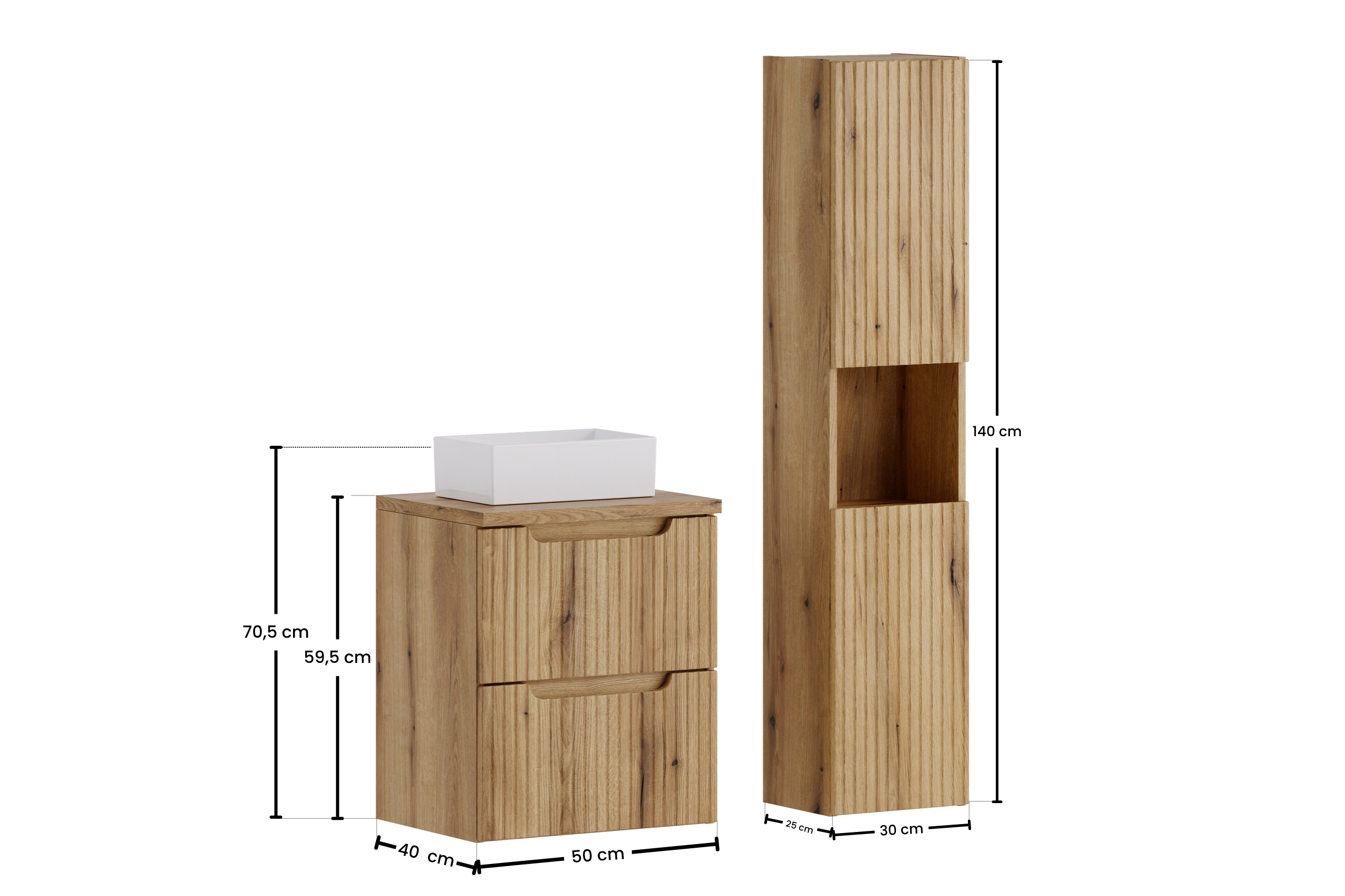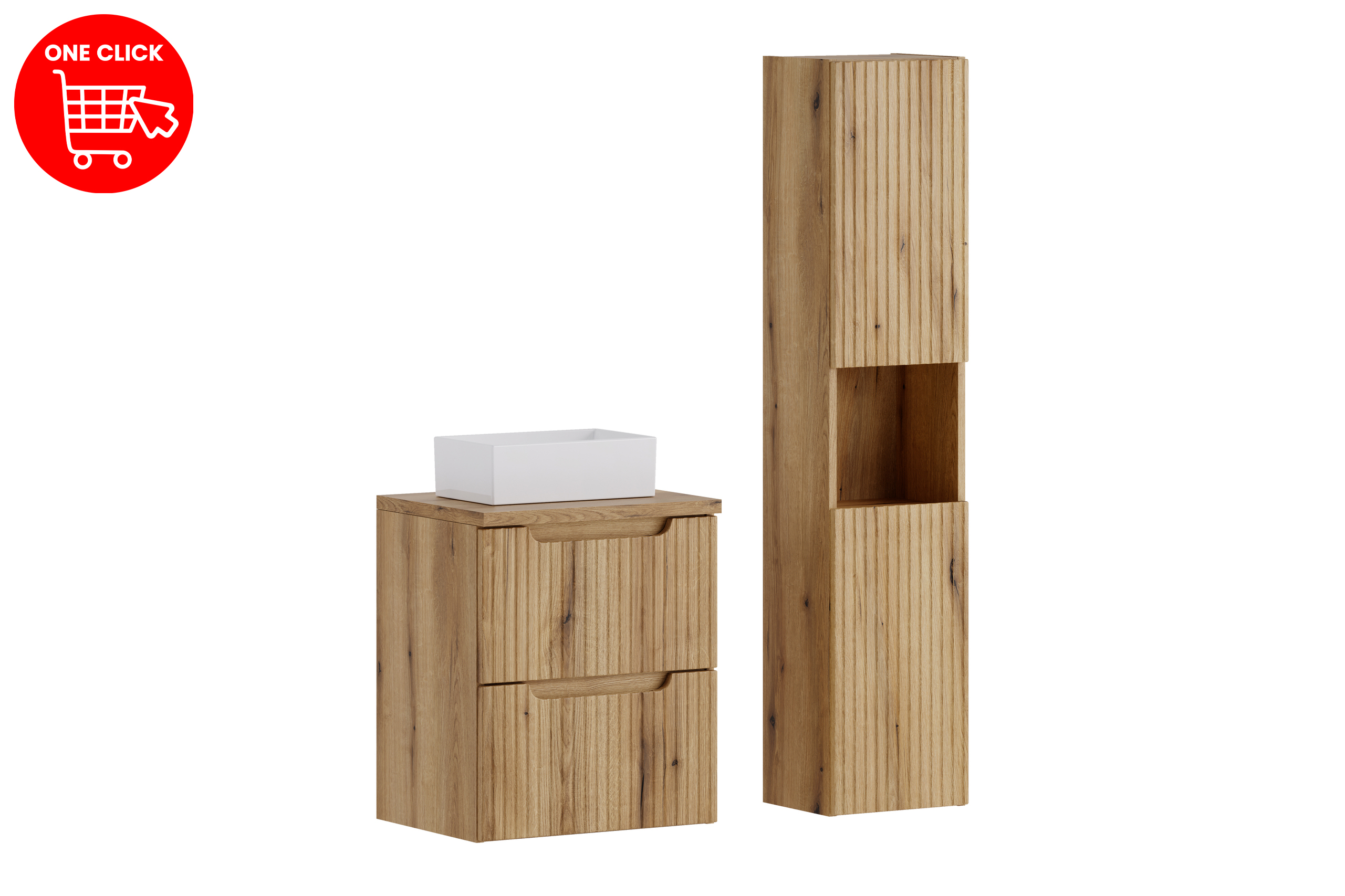NOVA COAST EVOKE komplett fürdőszoba bútor szett 50 cm – GAJA mosdóval és magas szekrénnyel – SET-NOCE B OAK 50CM S UN GAJA HC