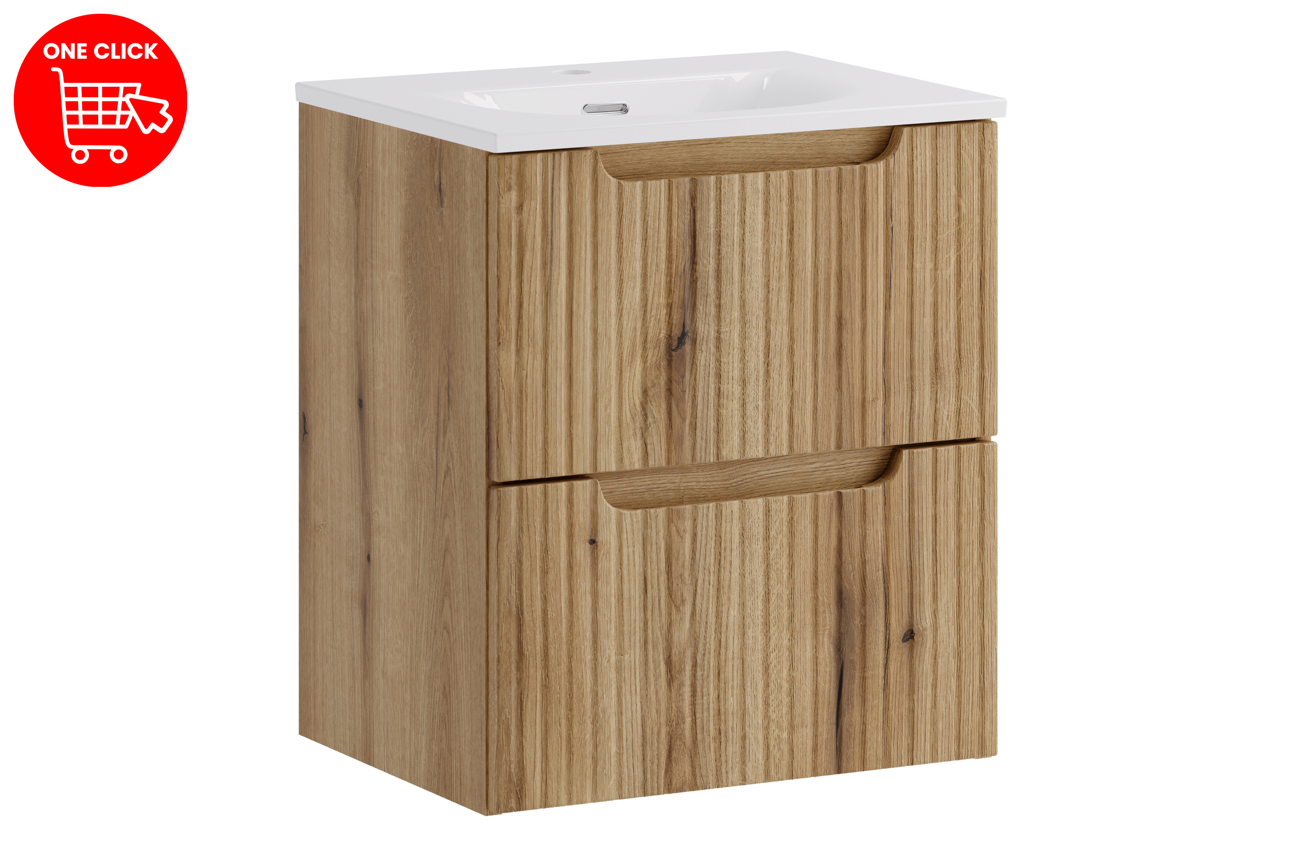 A NOVA COAST EVOKE összeállítás Coast Evoke Oak árnyalatban érkezik, egymással harmonizáló elemekből felépítve. A szett praktikus tárolást, egységes megjelenést és modern fürdőszobai hangulatot kínál.