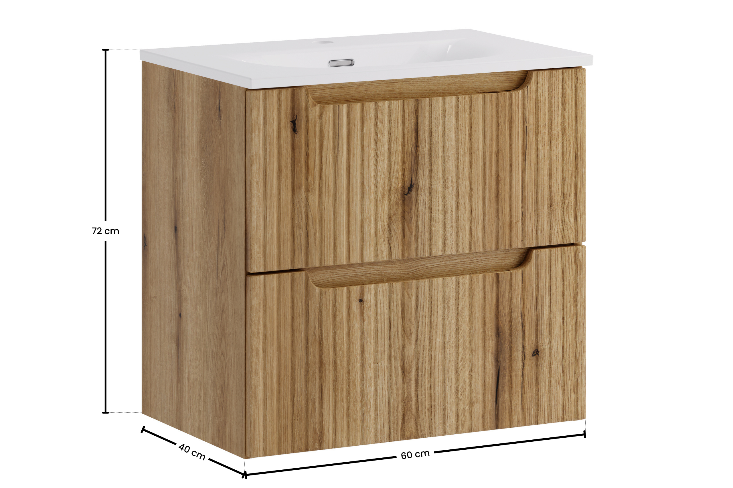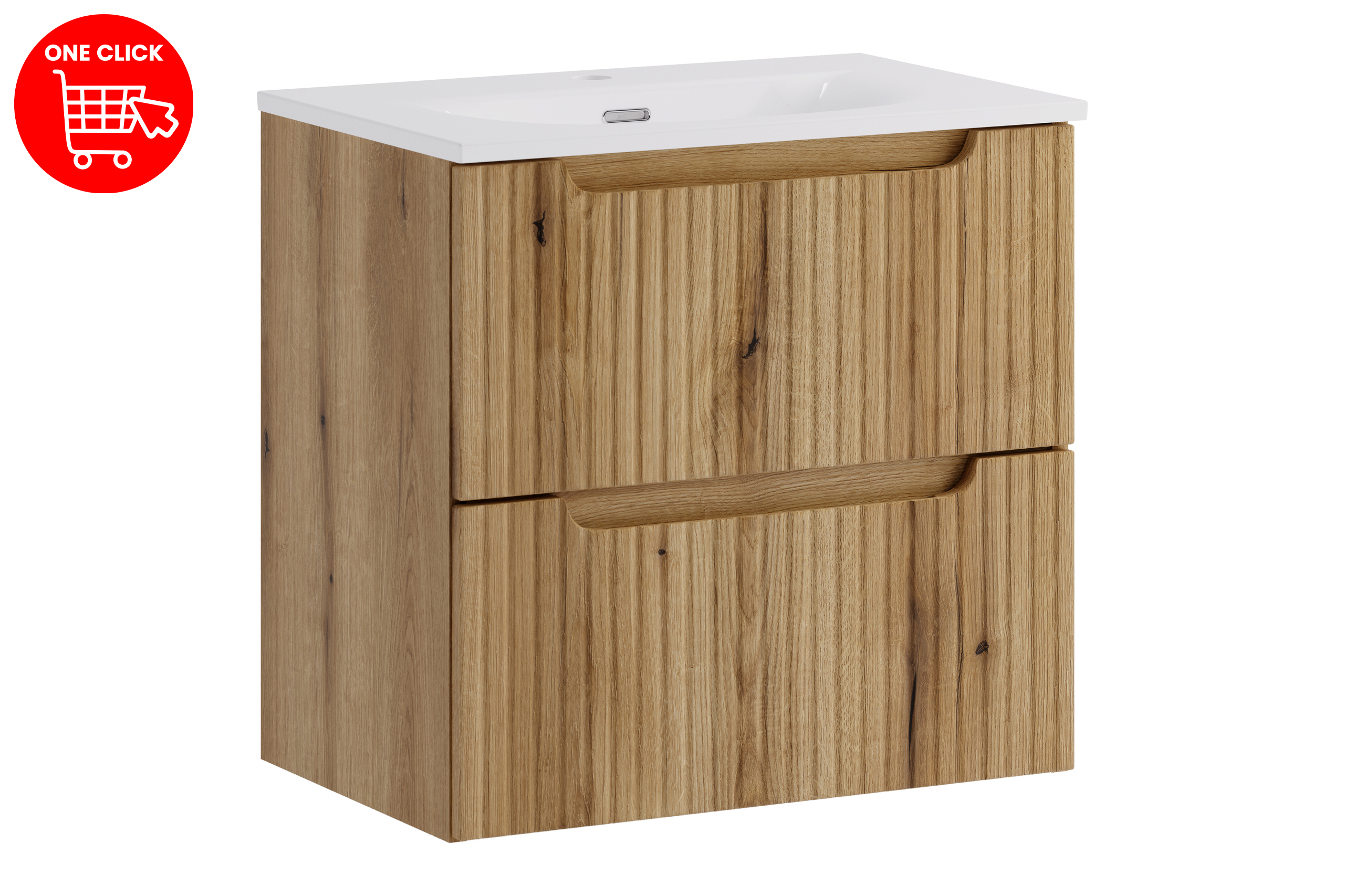 A NOVA COAST EVOKE összeállítás Coast Evoke Oak árnyalatban érkezik, egymással harmonizáló elemekből felépítve. A szett praktikus tárolást, egységes megjelenést és modern fürdőszobai hangulatot kínál.