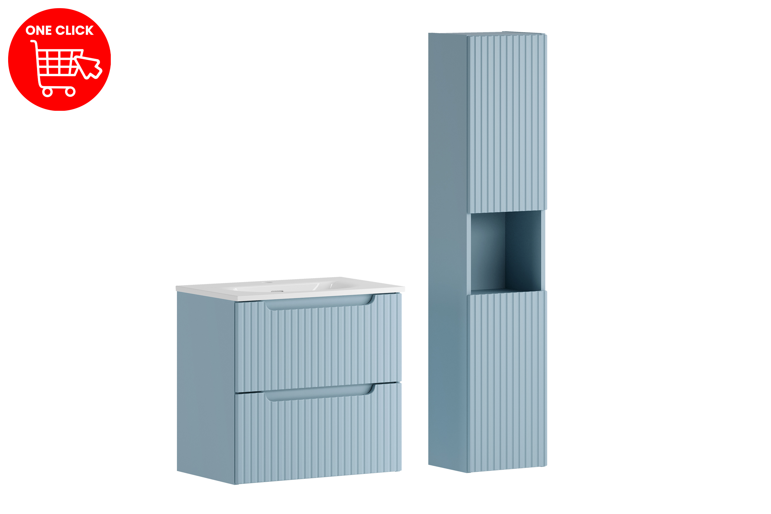 NOVA DENIM komplett fürdőszoba bútor szett 60 cm – SKY bútorbeépíthető mosdóval és magas szekrénnyel SET-NOD 60CM S SKY 3 HC