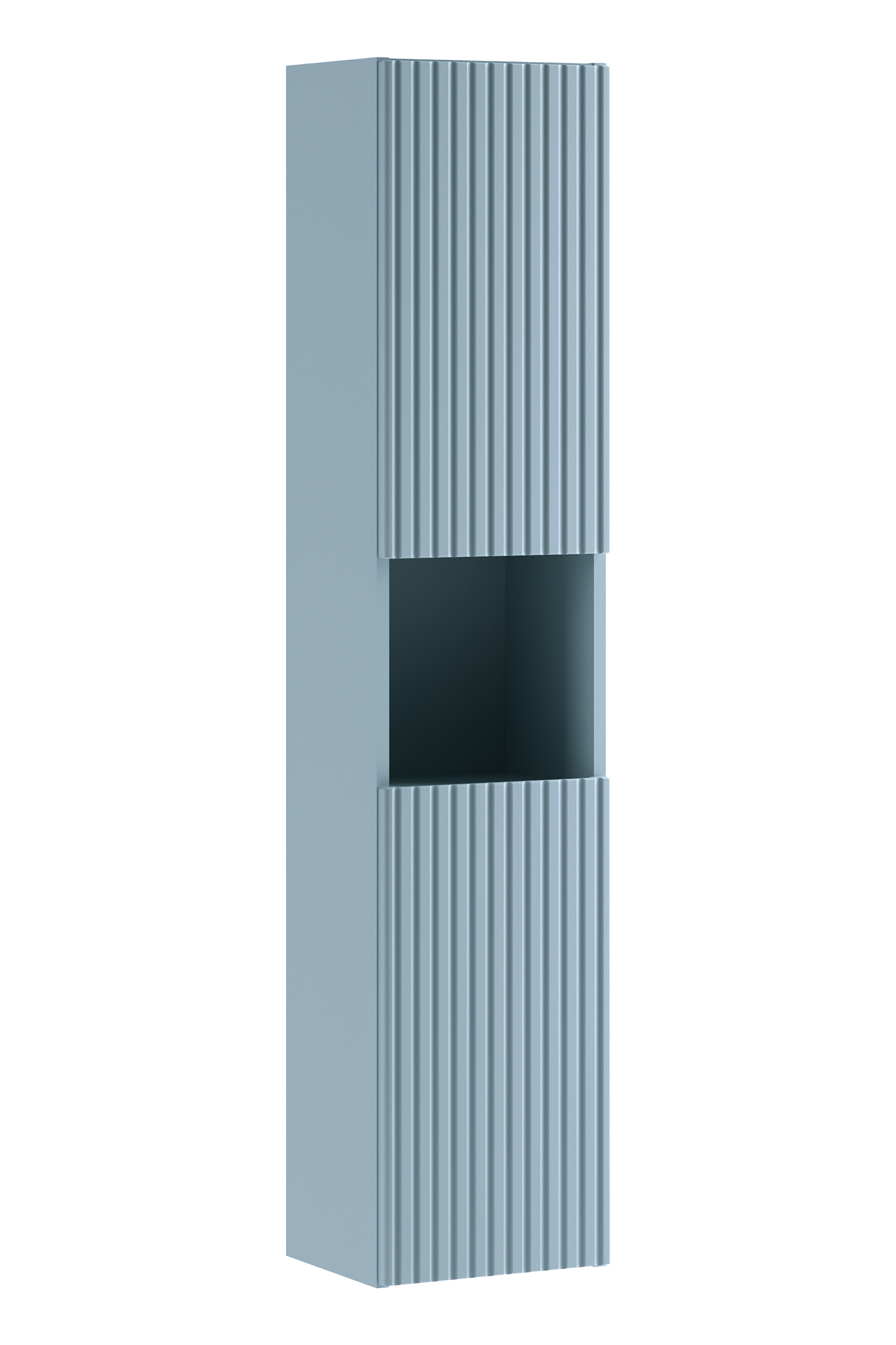 NOVA DENIM fürdőszoba bútor – karakteres kék árnyalat, modern bordázott frontok és sokoldalú tárolási megoldások