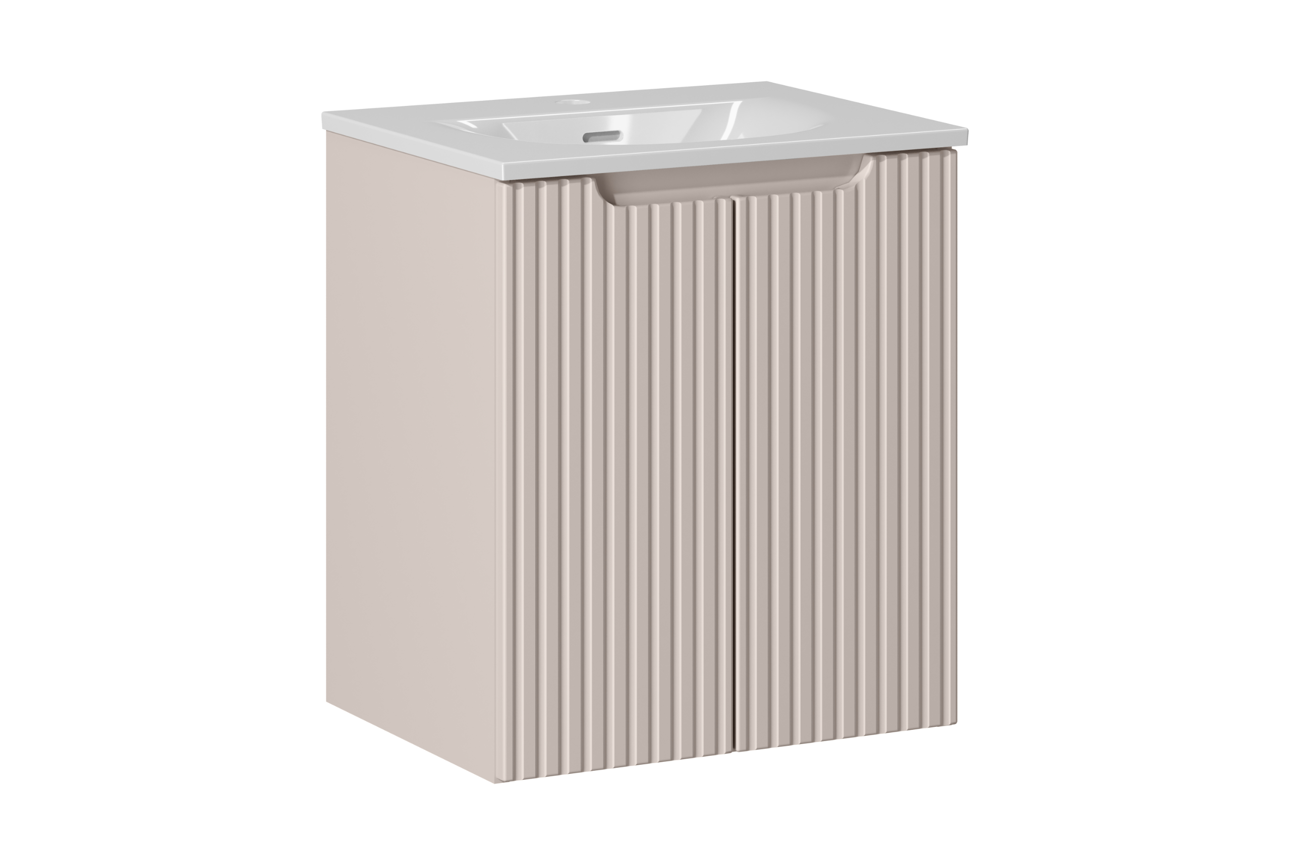 NOVA CASHMERE fürdőszoba bútor kollekció – elegáns kasmír árnyalat, bordázott frontok és átgondolt tárolás