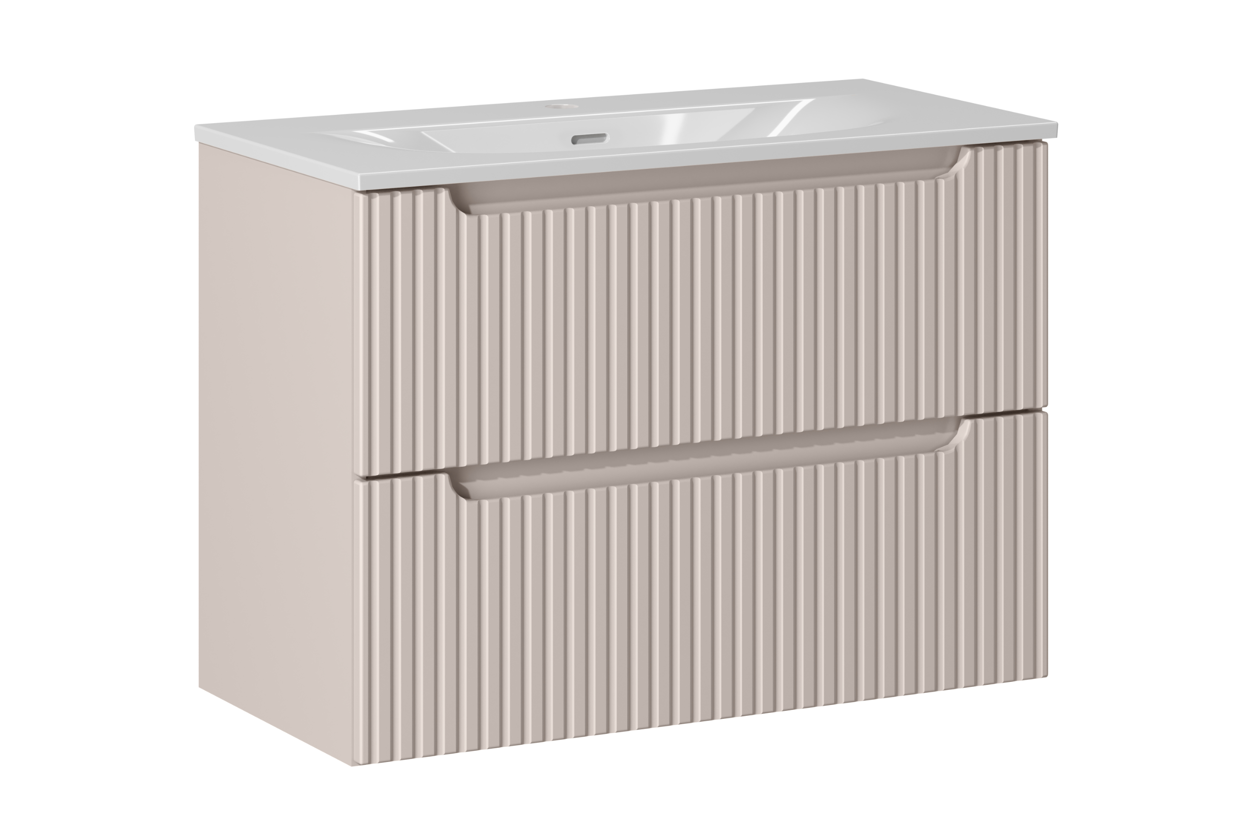 NOVA CASHMERE fürdőszoba bútor kollekció – elegáns kasmír árnyalat, bordázott frontok és átgondolt tárolás