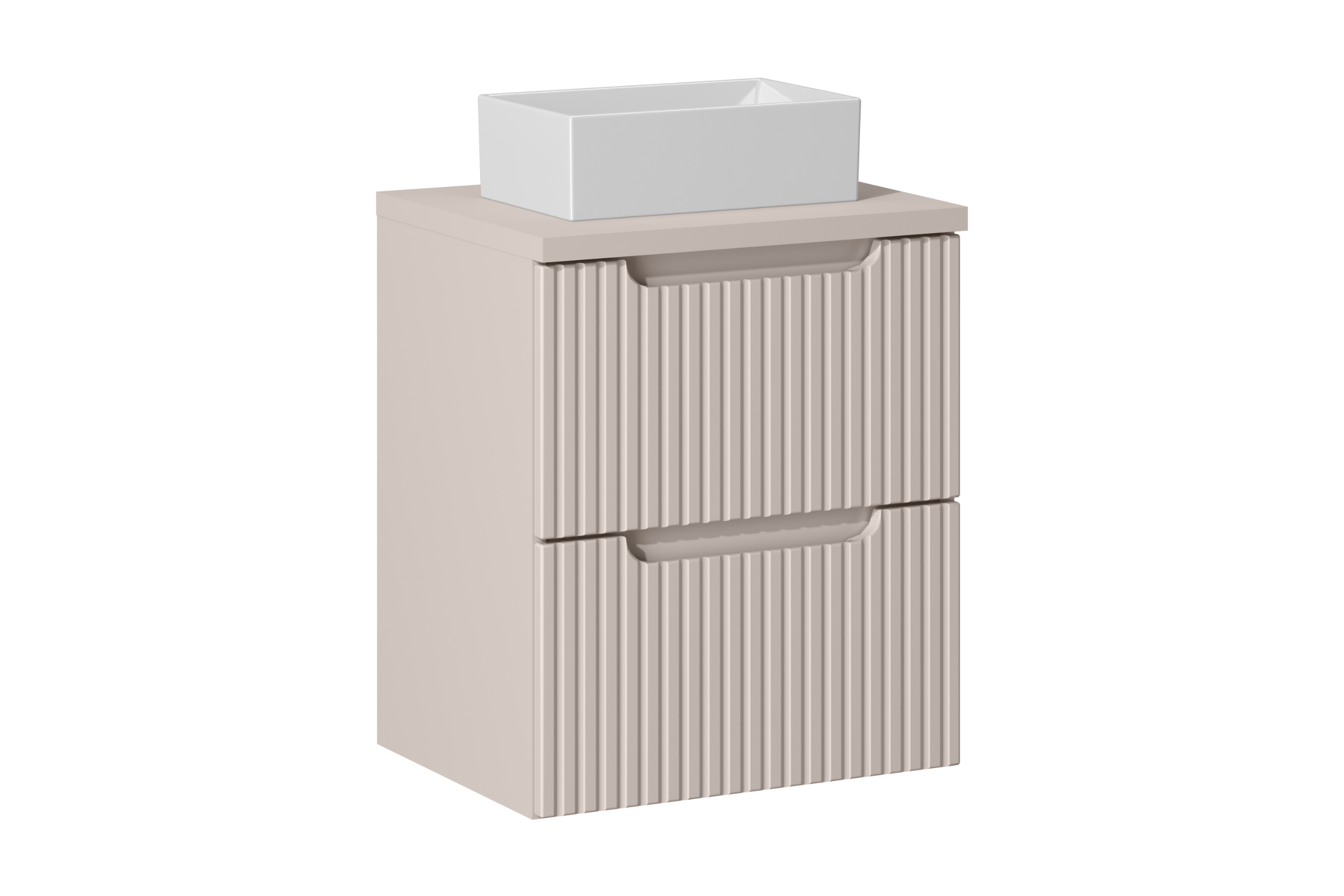 NOVA CASHMERE fürdőszoba bútor kollekció – elegáns kasmír árnyalat, bordázott frontok és átgondolt tárolás