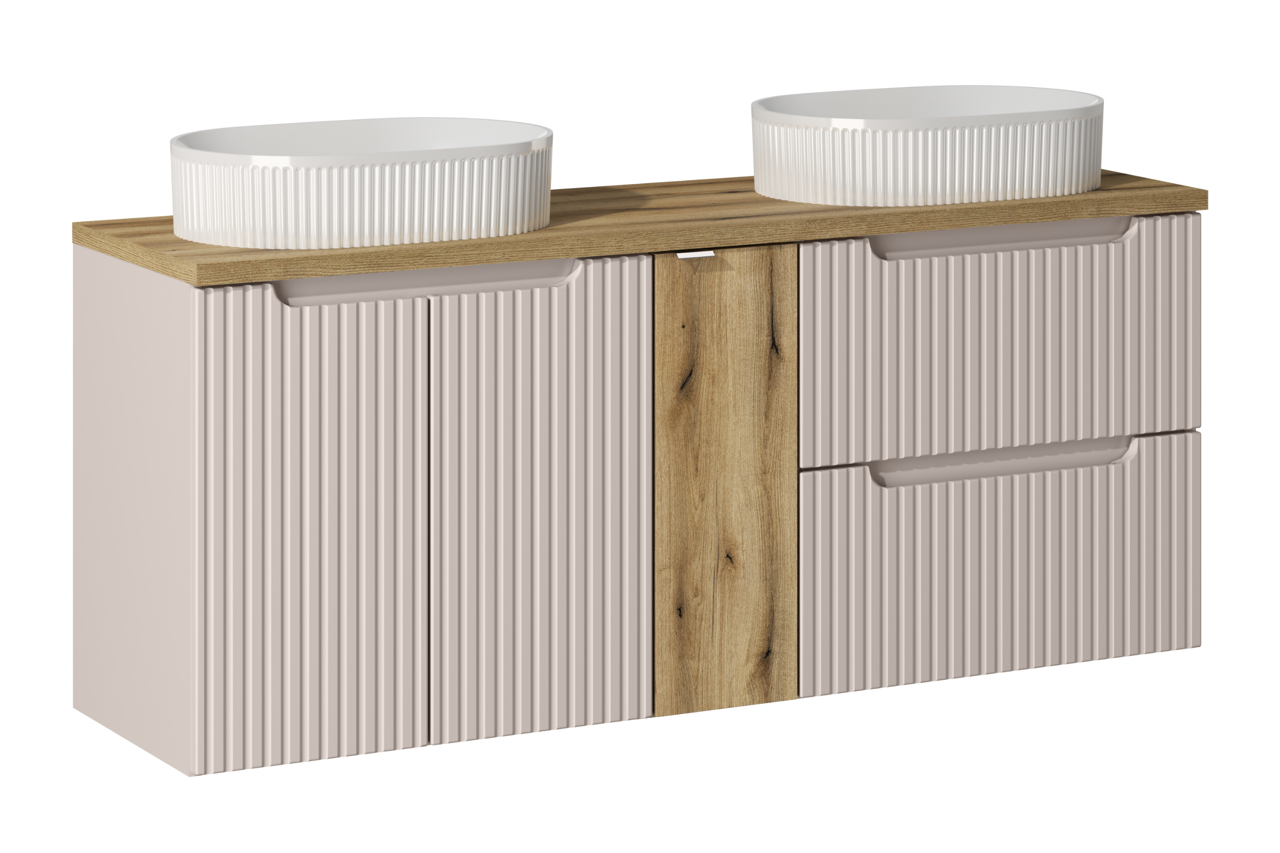 NOVA CASHMERE fürdőszoba bútor kollekció – elegáns kasmír árnyalat, bordázott frontok és átgondolt tárolás