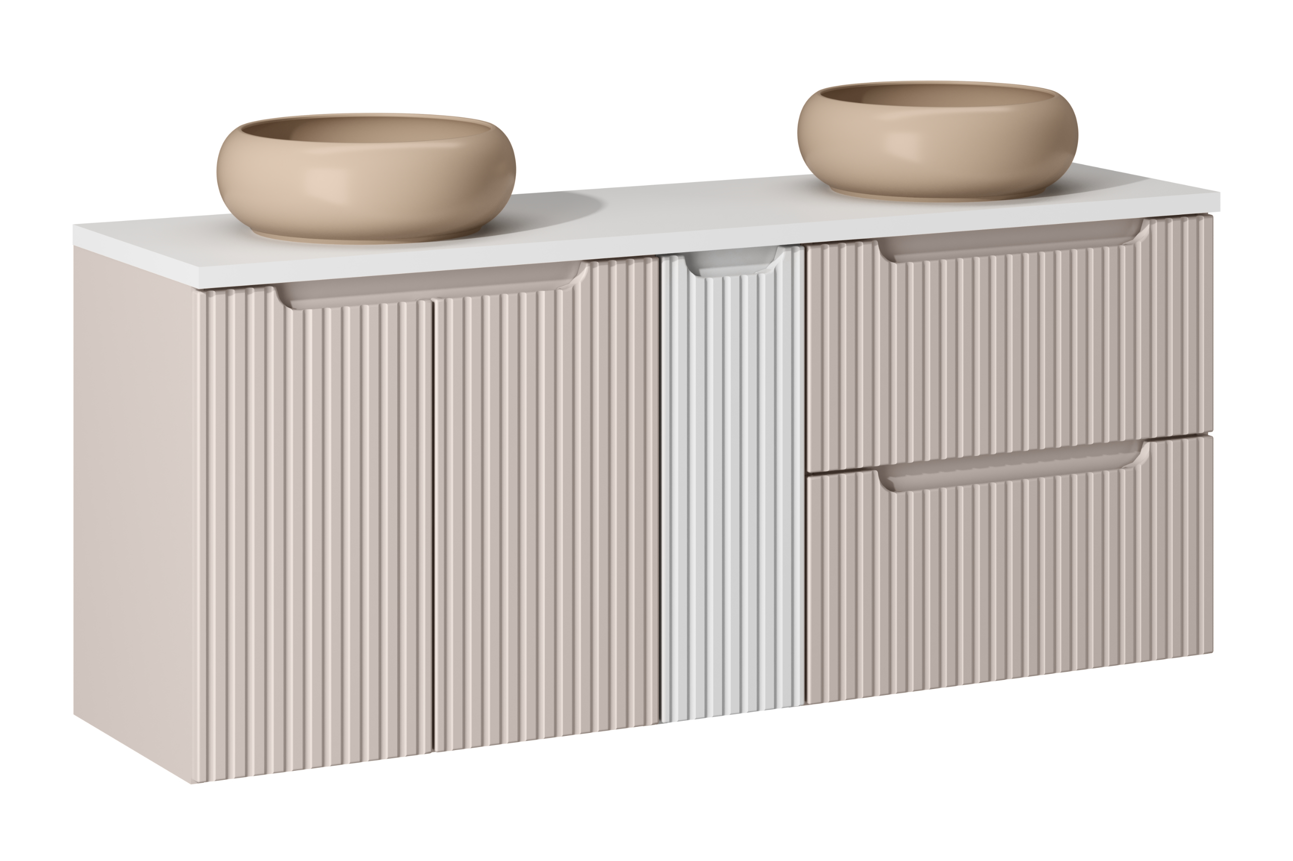 NOVA CASHMERE fürdőszoba bútor kollekció – elegáns kasmír árnyalat, bordázott frontok és átgondolt tárolás