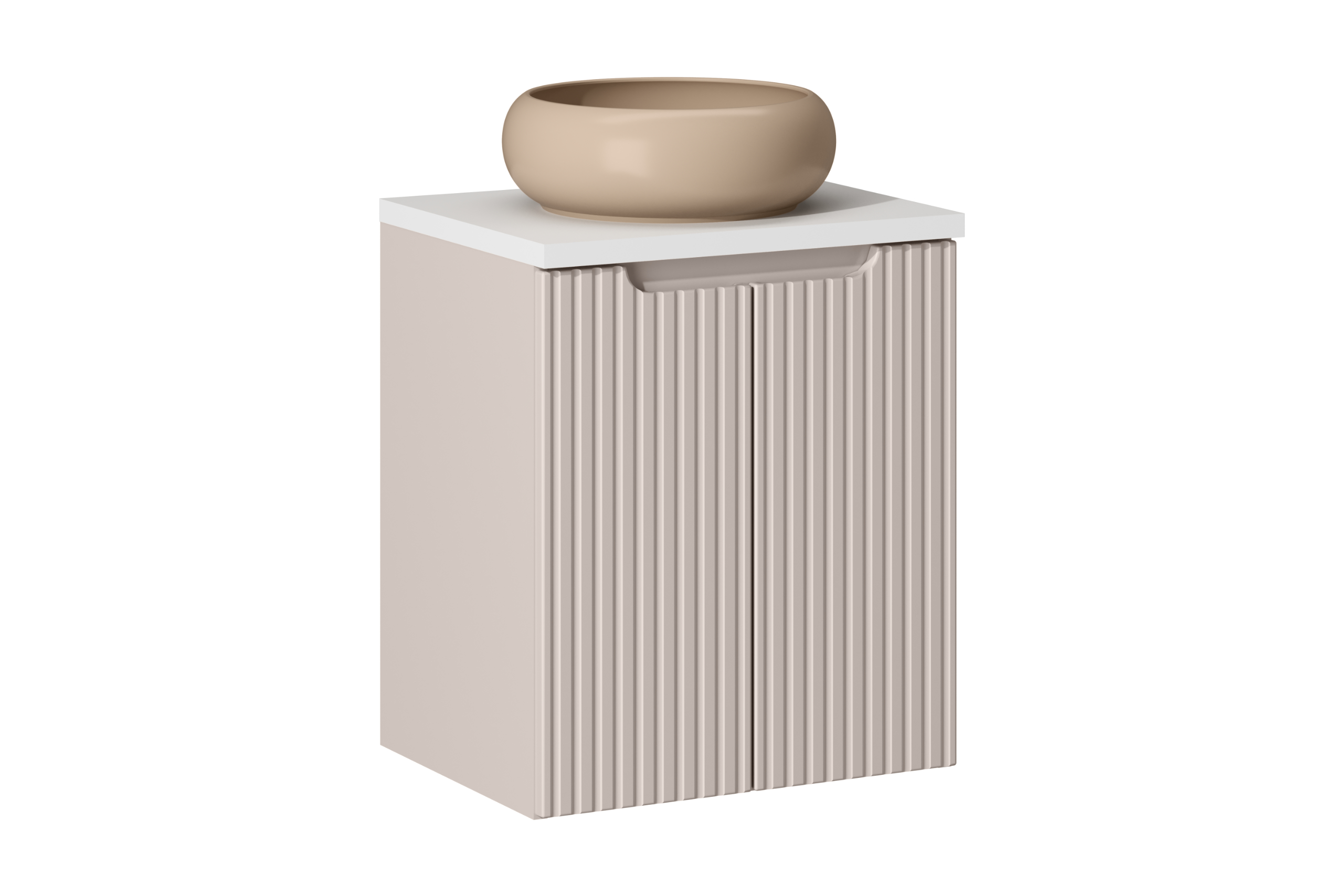 NOVA CASHMERE fürdőszoba bútor kollekció – elegáns kasmír árnyalat, bordázott frontok és átgondolt tárolás