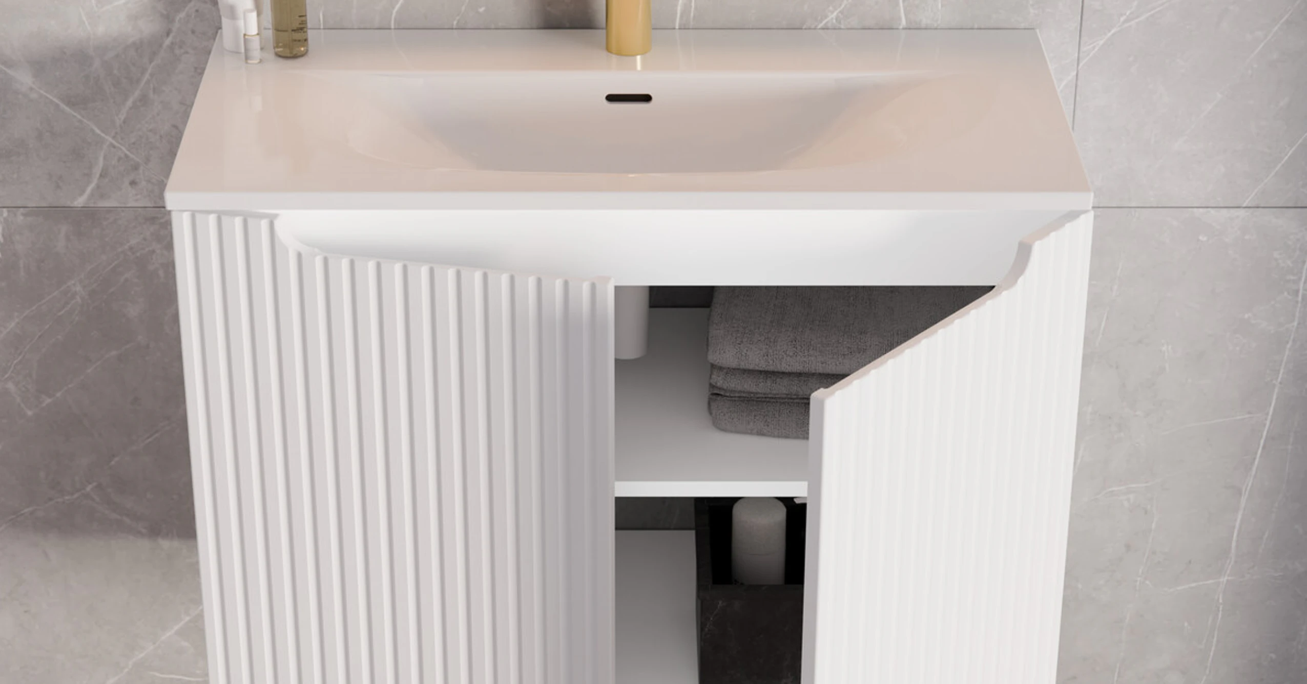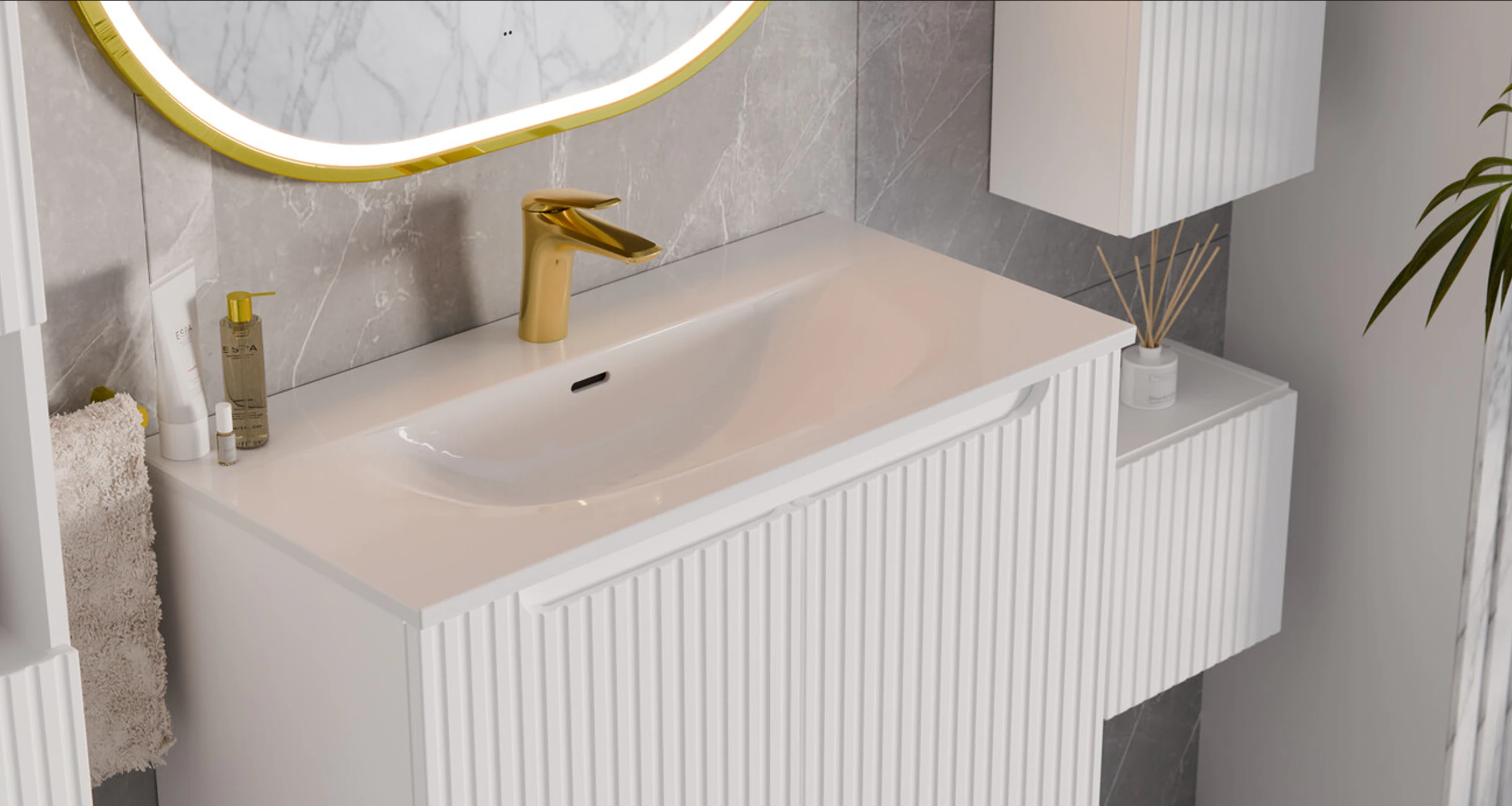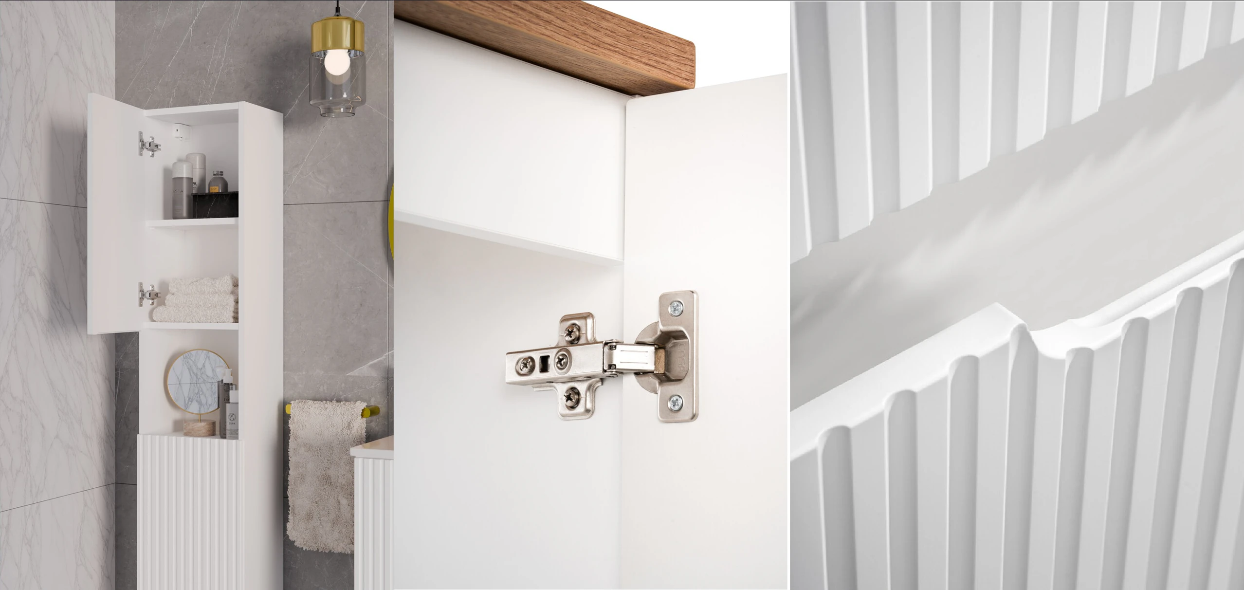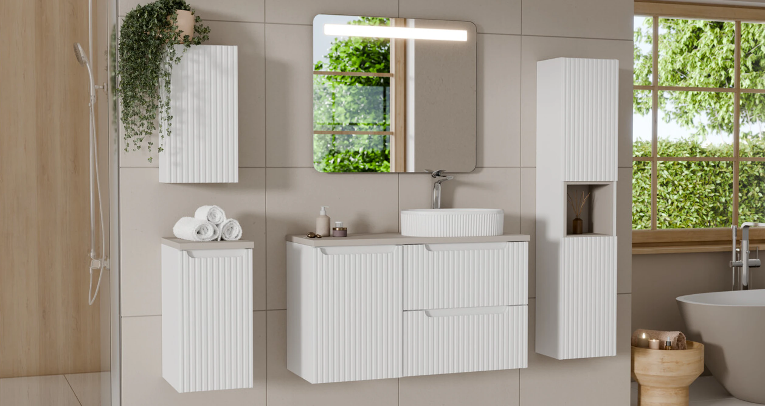 A NOVA WHITE kollekció egyik legfontosabb jellemzője a letisztult, modern design. A modern fürdőszoba bútor stílus ma már nem csupán trend, hanem alapelvárás, amely a funkcionalitást és az esztétikát egyesíti. A fehér szín dominanciája világosabbá és tágasabbá teszi a teret, miközben a bordázott frontok finom textúrát adnak a bútoroknak.
