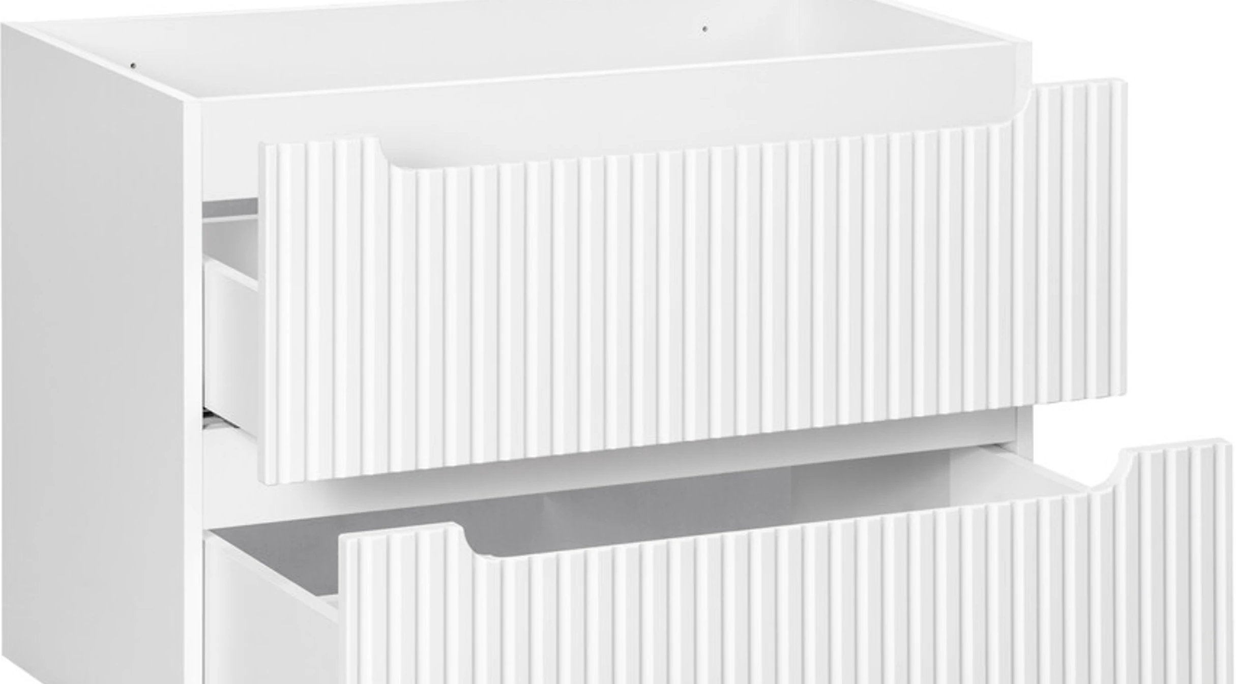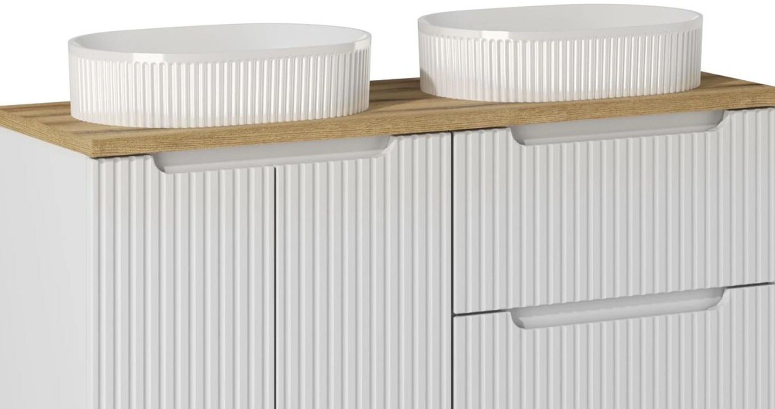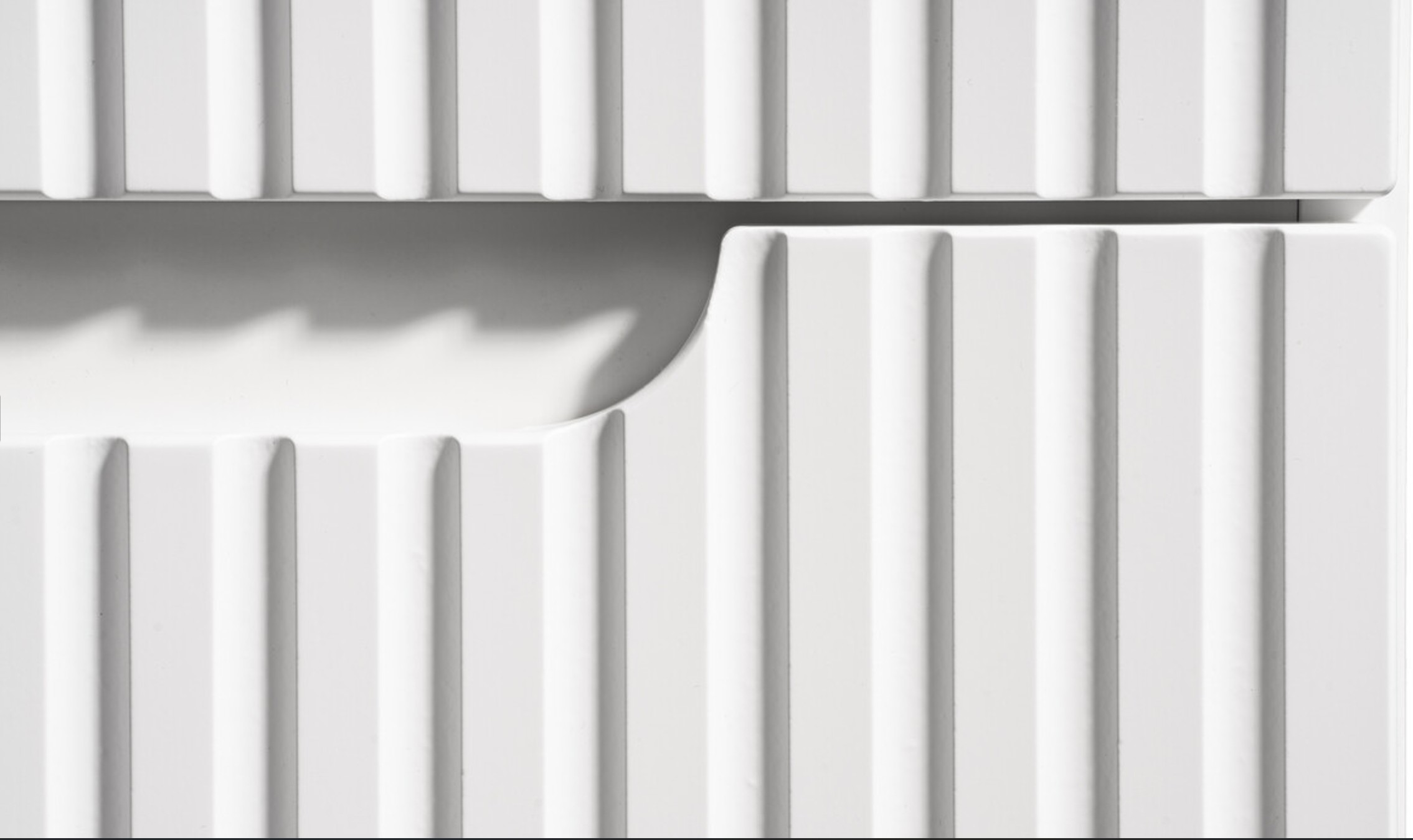 A NOVA WHITE kollekció egyik legnagyobb erőssége az, hogy a design és a funkcionalitás tökéletes egyensúlyban van. A bordázott frontok nemcsak esztétikai szerepet töltenek be, hanem egyedi karaktert is adnak a bútoroknak.